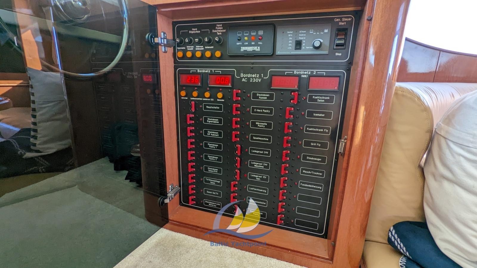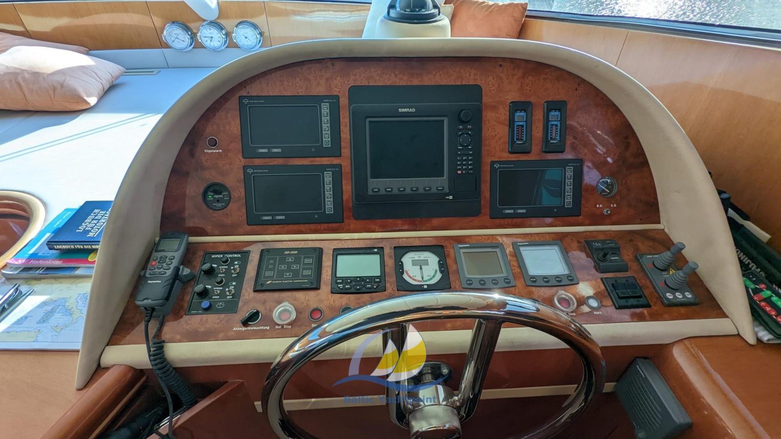 Indicateur d'angle de barre, Commande électrique, Montre de bord, Moniteur, DSC VHF, Plotter GPS, Yacht controller.