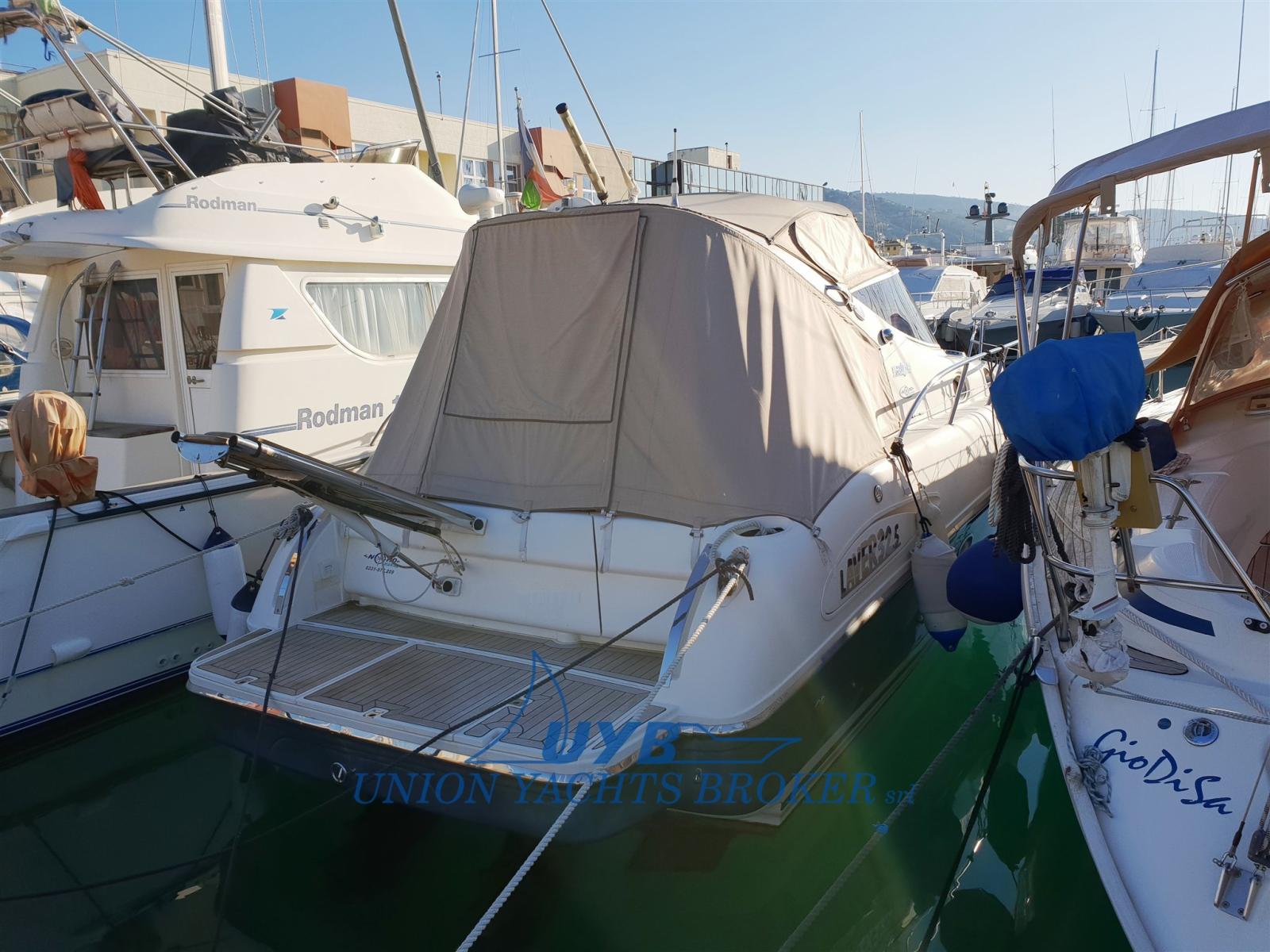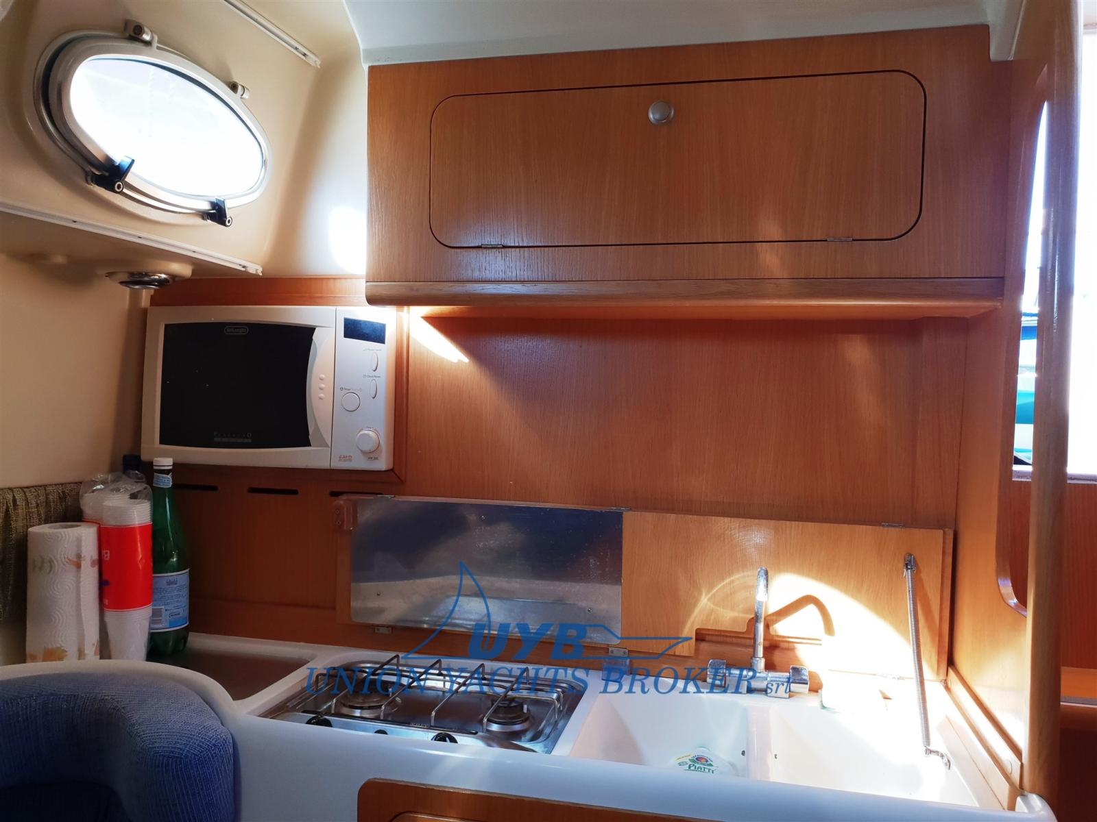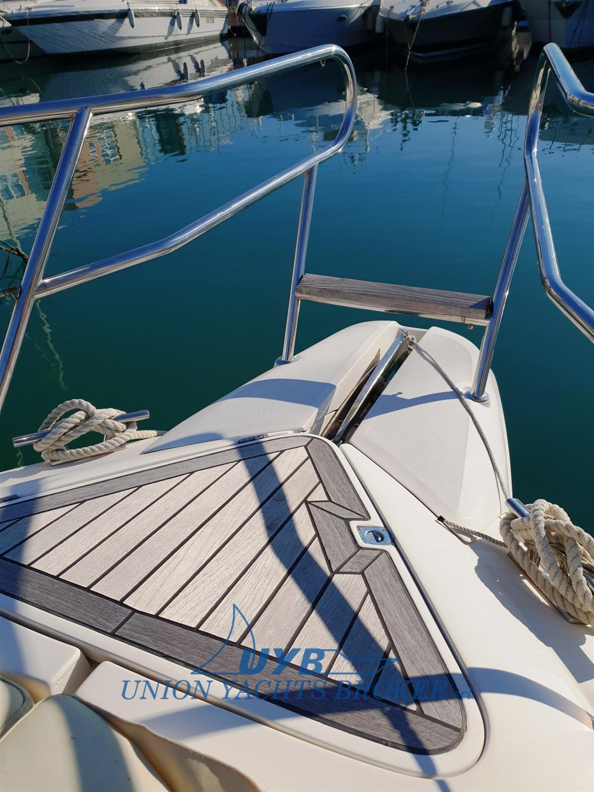 Eau sous pression, 3 Batteries (2x140 + 1x120), Douche de cockpit, Phare de poursuite, Passerelle (Idraulica besenzoni), Pompe de cale automatique, Porte latérale, Cockpit en teck, Prise de quai, Rollbar, Guindeau électrique (con telecomando), Echelle de bain, table de cockpit.