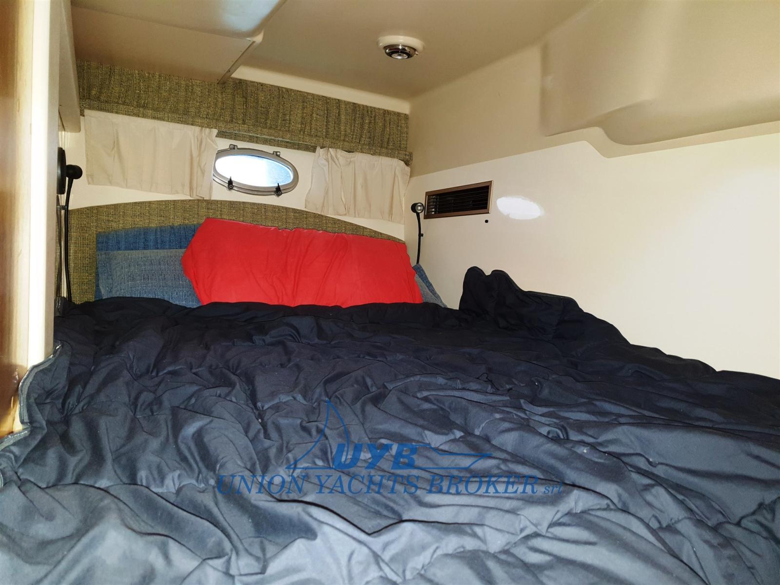 Cabine arrière avec entrée, armoire, fauteuil et n. 2 lits simples avec pleine largeur convertible en double