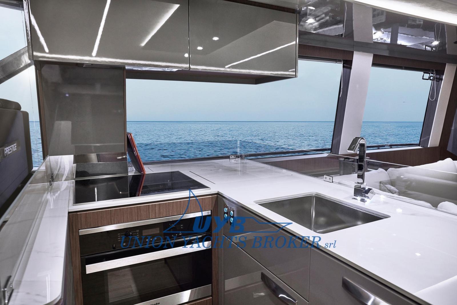 Cuisine (lavello, miscelatore, cappa), Four (combinato microonde/grill), Réfrigérateur extérieur (flybridge), Réfrigérateur intérieur (150L), Machine à glaçons, Lave et sèche-linge, Plaque vitrocéramique, Winecooler.