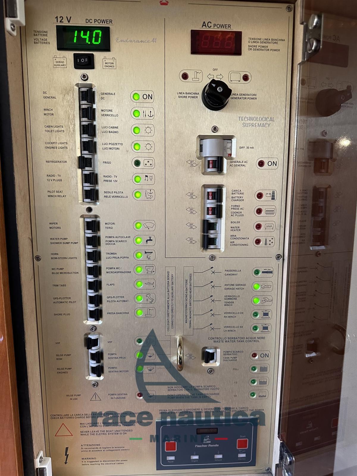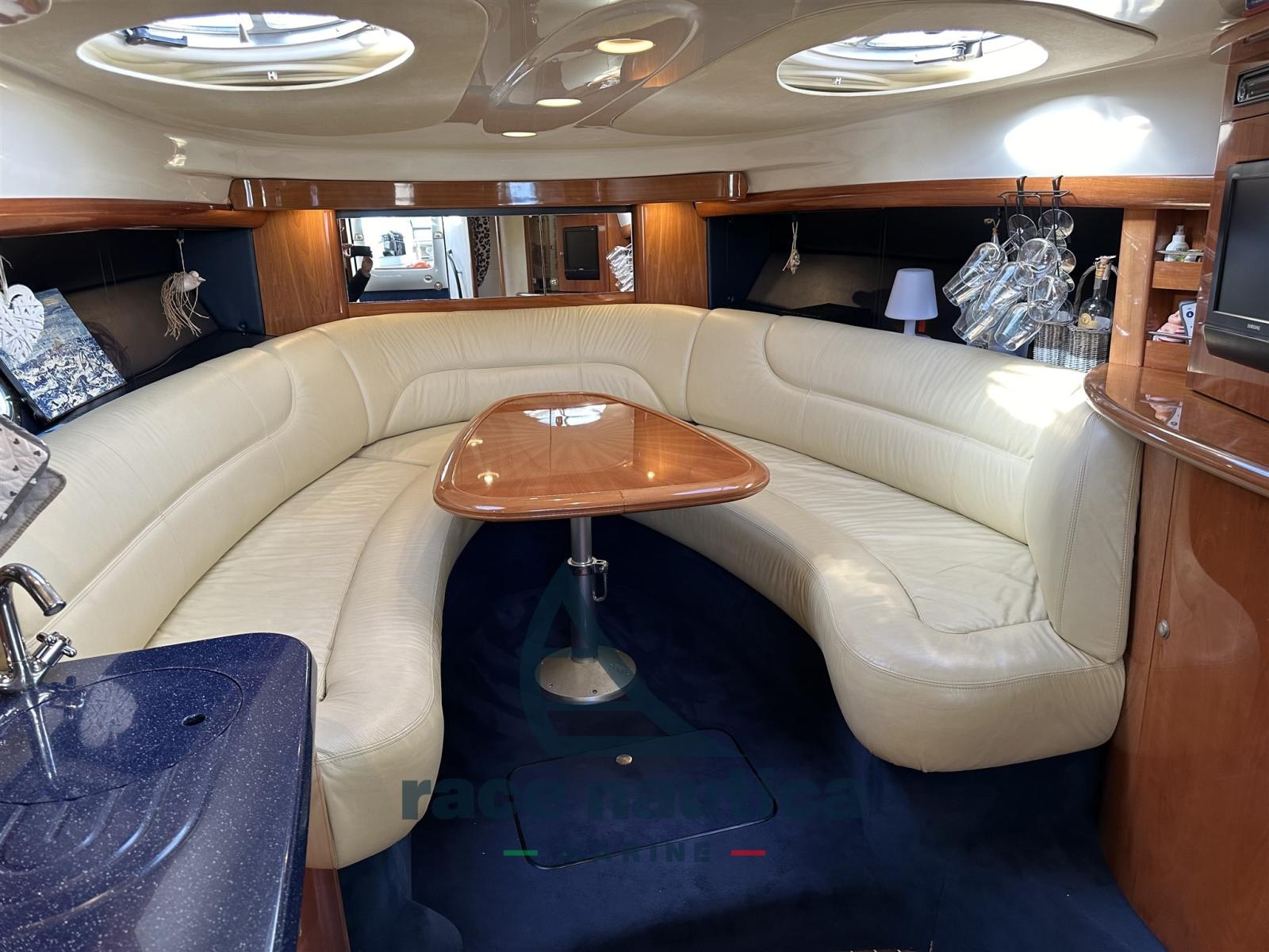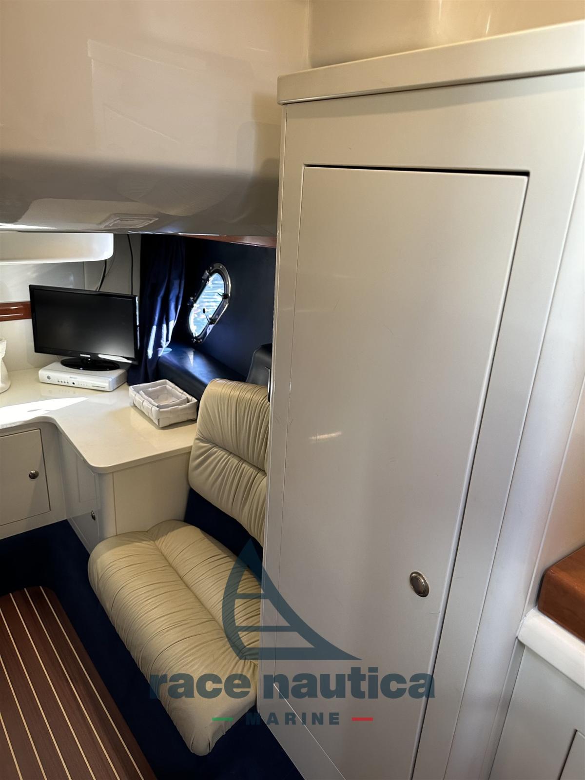 Alarme moteur, Alarme de pompe de cale, Eau sous pression, Radeau de sauvetage (entro le 12), 3 Batteries (1 motore da 140 ah,due servizi 190 ah AGM del 2021), Douche de cockpit (calda e fredda), Flaps hydrauliques, Garage à annexe, Lavabo dans le cockpit, Éclairage de courtoisie, Spots sous-marins, Plateforme arrière, Pompe de cale automatique, Pompe de cale manuelle, Cockpit en teck, Prise de quai, Connexion eau sous pression à quai, Rollbar, Guindeau électrique, Echelle de bain, table de cockpit (in teak), Table pliante de salon, Corne.