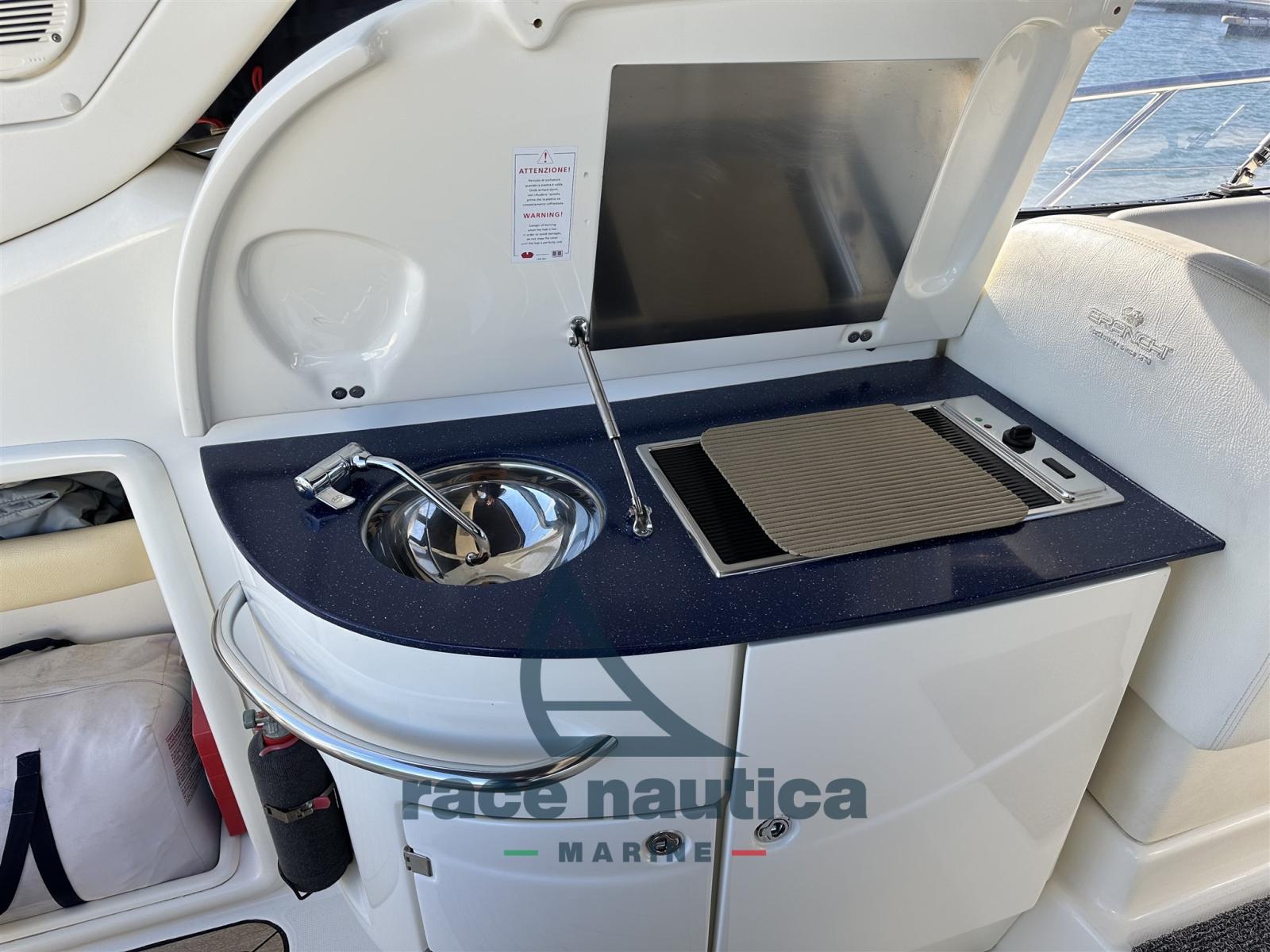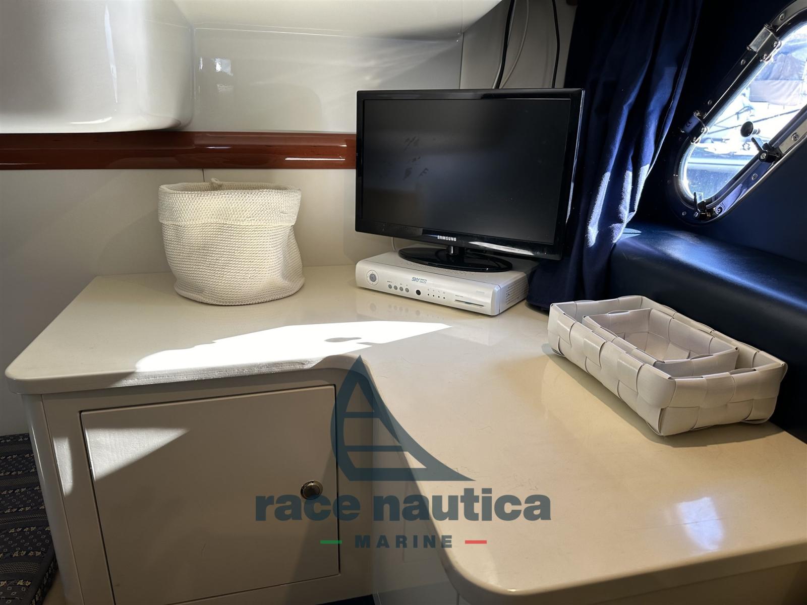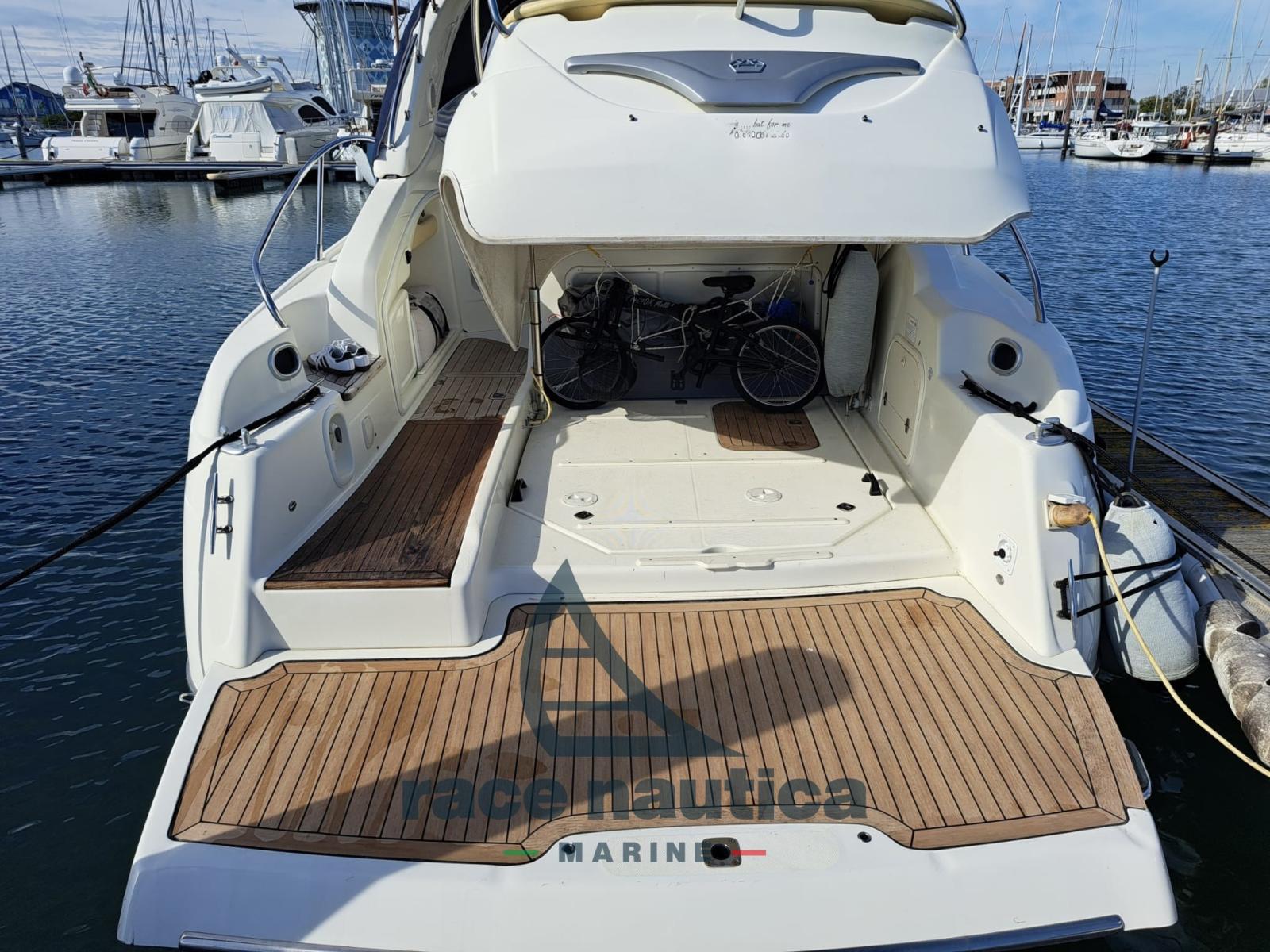 Alarme moteur, Alarme de pompe de cale, Eau sous pression, Radeau de sauvetage (entro le 12), 3 Batteries (1 motore da 140 ah,due servizi 190 ah AGM del 2021), Douche de cockpit (calda e fredda), Flaps hydrauliques, Garage à annexe, Lavabo dans le cockpit, Éclairage de courtoisie, Spots sous-marins, Plateforme arrière, Pompe de cale automatique, Pompe de cale manuelle, Cockpit en teck, Prise de quai, Connexion eau sous pression à quai, Rollbar, Guindeau électrique, Echelle de bain, table de cockpit (in teak), Table pliante de salon, Corne.