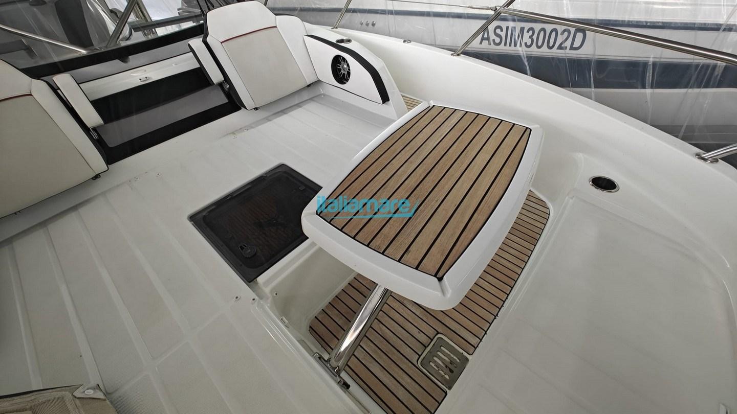 Alarme moteur, Alarme de pompe de cale, Ancre (accaio), Eau sous pression, Trim hydraulique, 5 Batteries, Passavant en teck, Douche de cockpit, Phare de poursuite, Flaps électriques, Hard top, Extincteur(s) fixe(s), Indicateurs de flaps, Éclairage de courtoisie, Spots sous-marins, Passerelle (manuale), Plateforme arrière (laterale elettrica), Pompe de cale automatique, Pompe de cale manuelle, Porte latérale, Cockpit en teck, Prise de quai, Connexion eau sous pression à quai, Guindeau électrique, Echelle de bain, table de cockpit, T-Top, Pont en teck.