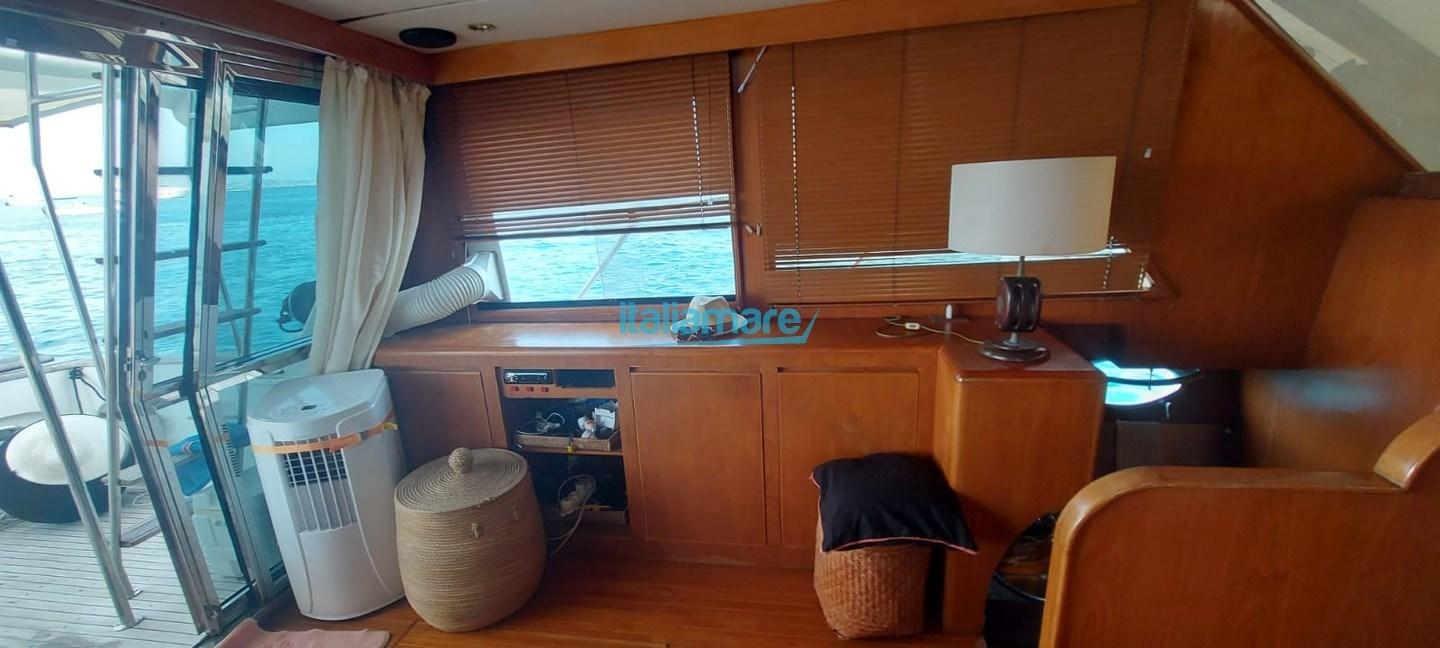 Alarme moteur, Ligne d'arbre de rechange, Eau sous pression, 6 Batteries, Douche de cockpit, 2 Hélice de rechange, Flaps hydrauliques, Extincteur(s) fixe(s), Éclairage de courtoisie, Passerelle, Plateforme arrière, Pompe de cale automatique, Cockpit en teck, Prise de quai, Guindeau électrique, Echelle de bain, Annexe.