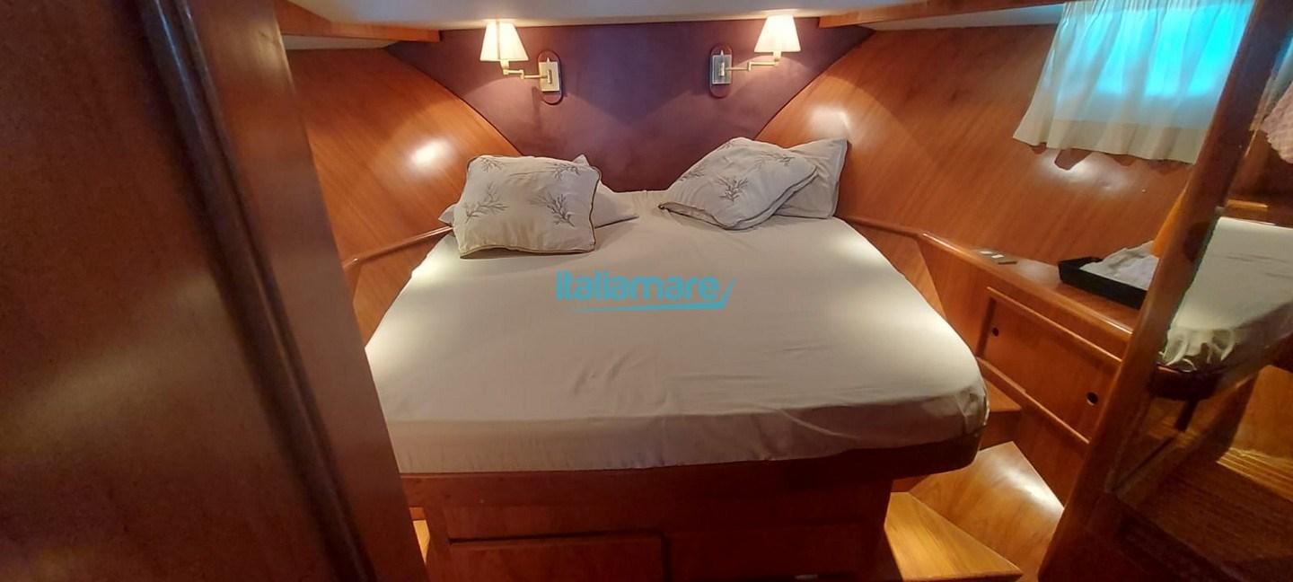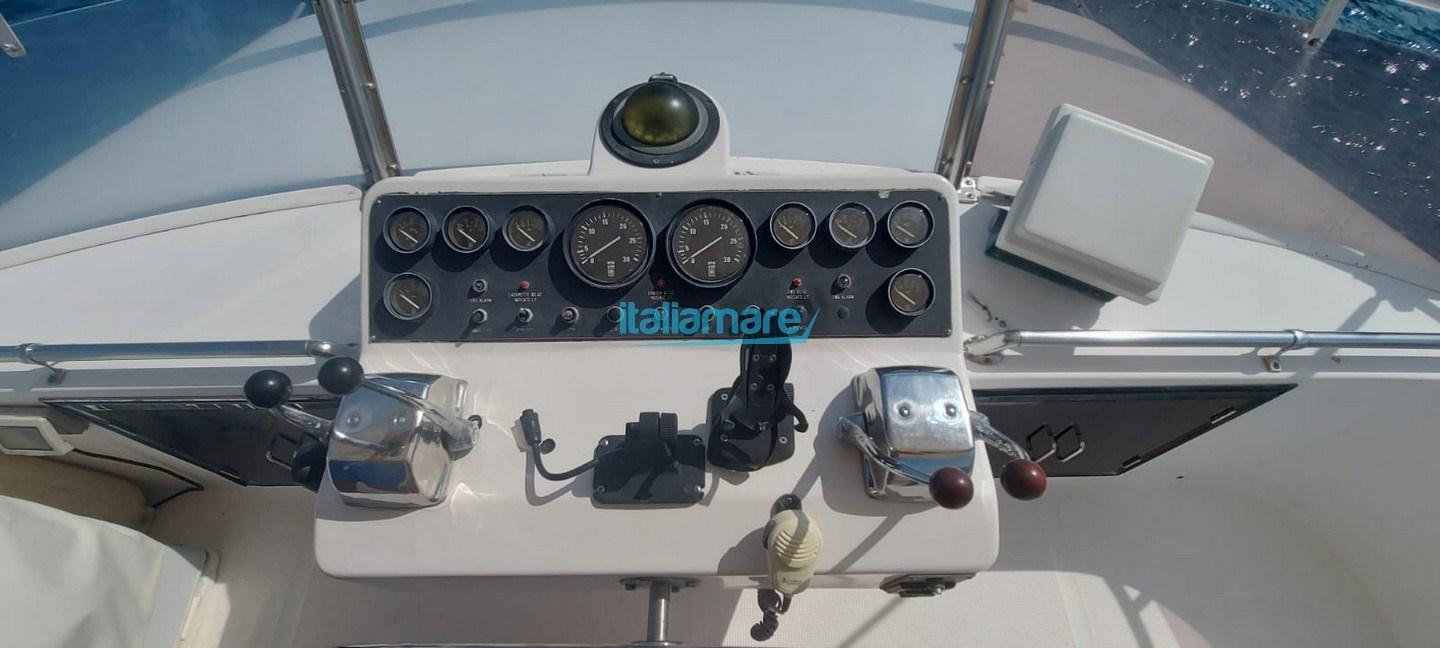 Ocean Alexander 42-135 Mediterraneo est un bateau à moteur à flybridge conçu pour offrir confort, autonomie et performances fiables, idéal pour les longues croisières en Méditerranée. Il est équipé de deux moteurs diesel Caterpillar de 435 ch chacun, révisés en 2006, avec environ 1 200 heures d’utilisation. Les intérieurs sont spacieux et bien organisés, finis en bois de cerisier, offrant une atmosphère chaleureuse et confortable. À l’extérieur, le flybridge offre un second poste de conduite, des sièges, un bain de soleil et un double auvent. Le cockpit arrière est grand et accueille confortablement 6 à 8 personnes. La plate-forme de bain en teck comprend une échelle et une annexe de 3 mètres avec moteur électrique. La passerelle est hydraulique.