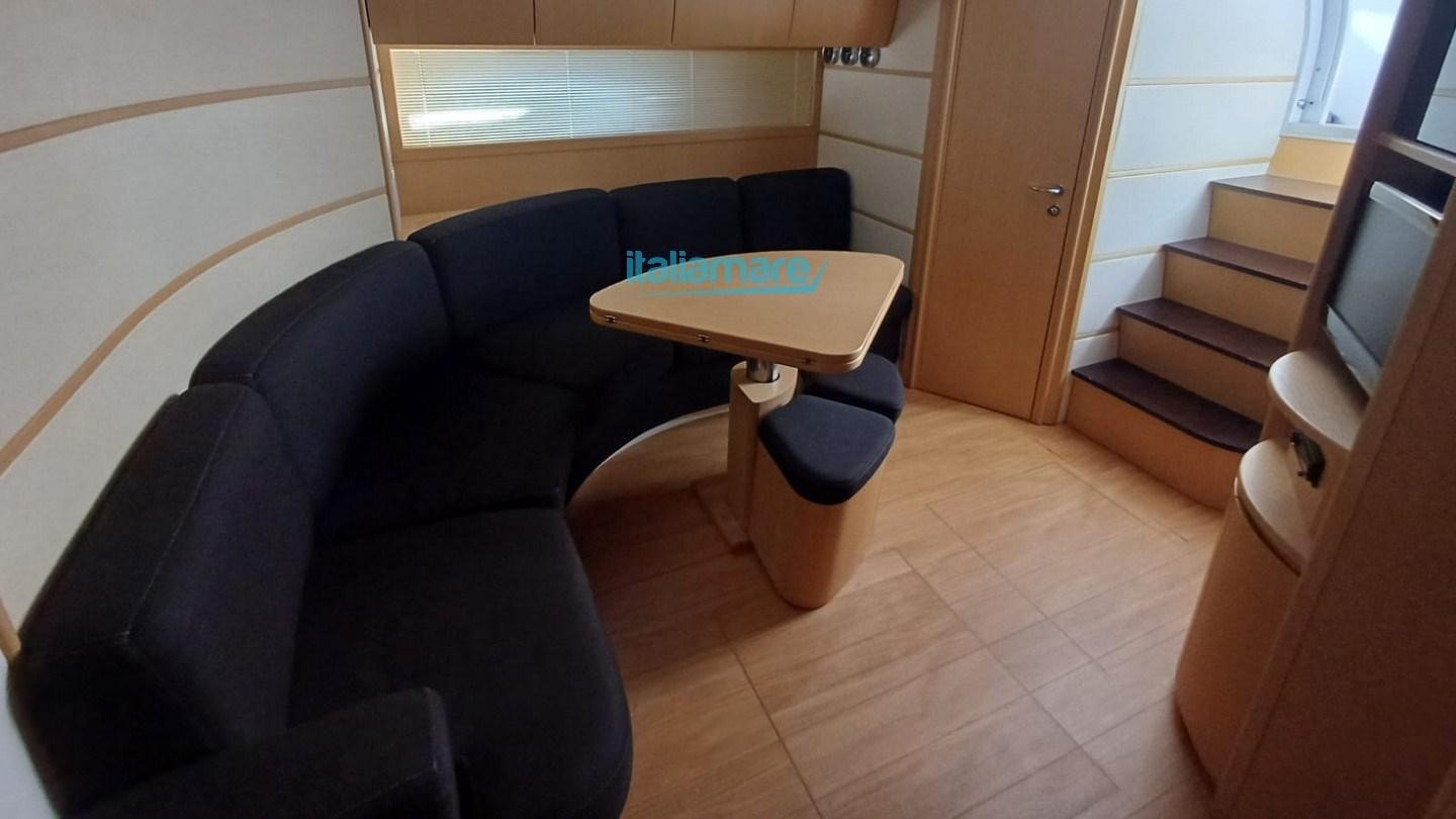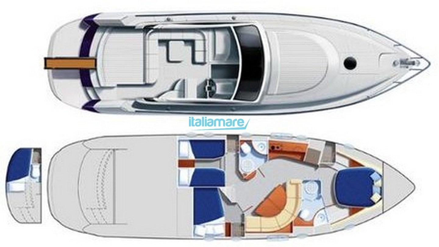 Excellent état de l’intérieur, de l’extérieur et des moteurs, avec un grand bain de soleil à l’arrière, une dînette en forme de U avec table extensible.