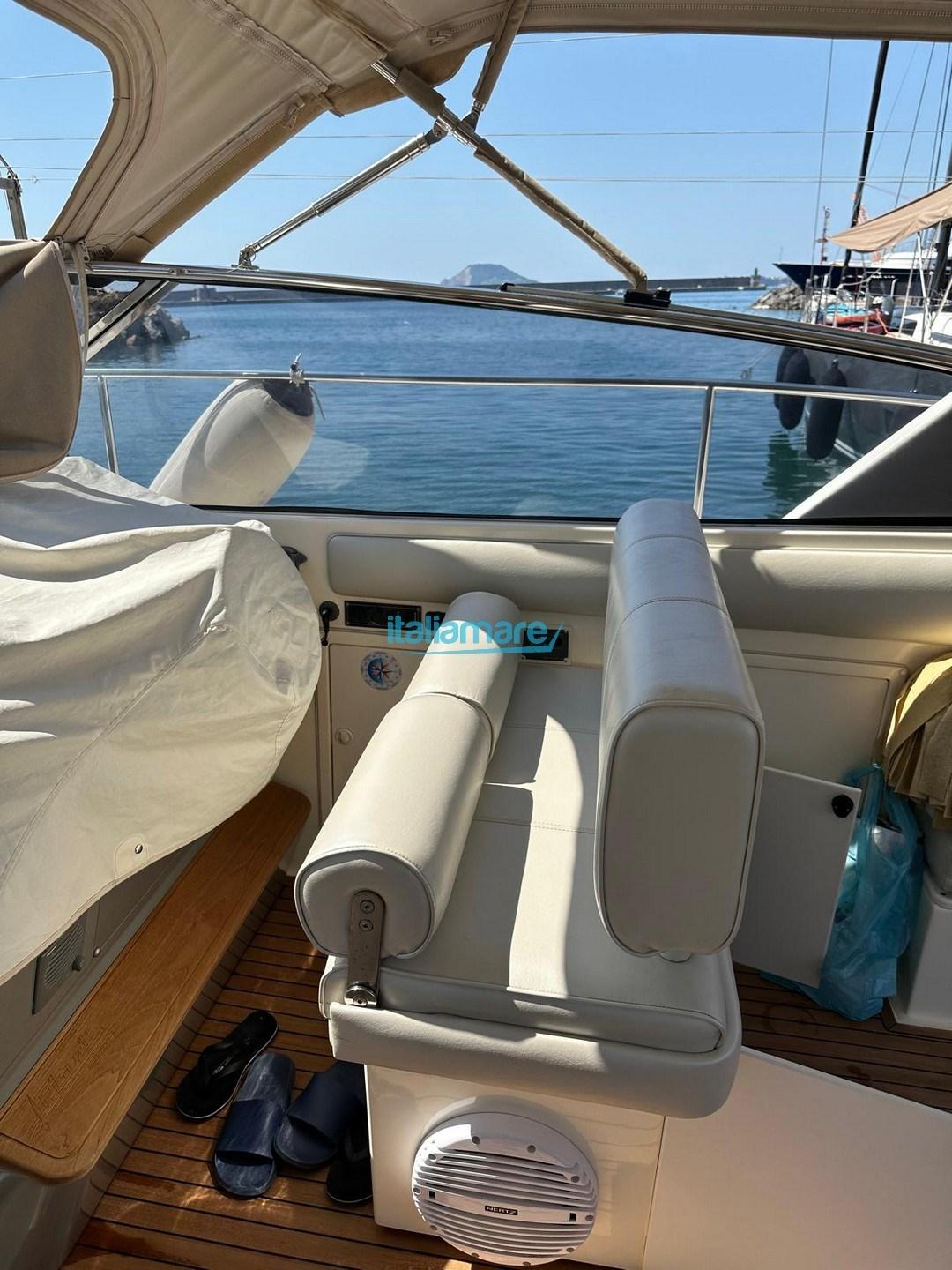 Alarme moteur, Alarme de pompe de cale, Eau sous pression, Douche de cockpit, Hélice de rechange, Phare de poursuite, Flaps hydrauliques, Extincteur(s) fixe(s), Indicateurs de flaps, Éclairage de courtoisie, Spots sous-marins, Passerelle, Plateforme arrière, Pompe de cale automatique, Pompe de cale manuelle, Cockpit en teck, Prise de quai, Rollbar, Guindeau électrique, Echelle de bain, table de cockpit, Annexe.