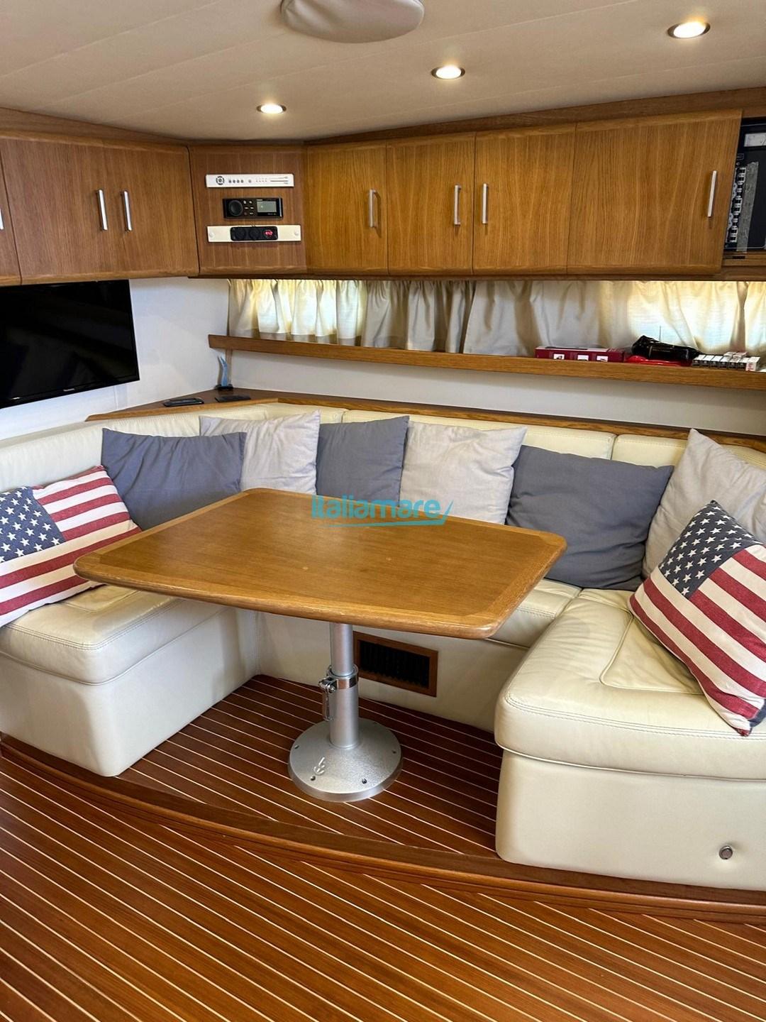 L’aménagement intérieur comprend trois cabines, deux salles de bains et une dinette spacieuse avec cuisine équipée, offrant jusqu’à six lits dans un environnement aéré et bien fini. À l’extérieur, le cockpit en teck est grand et fonctionnel, avec une table qui se transforme en bain de soleil, une passerelle hydraulique et des espaces de détente confortables à l’avant et à l’arrière. Le bateau est équipé de la climatisation, d’un générateur, de systèmes de sonorisation et de télévision, ainsi que d’une instrumentation électronique complète pour la navigation.