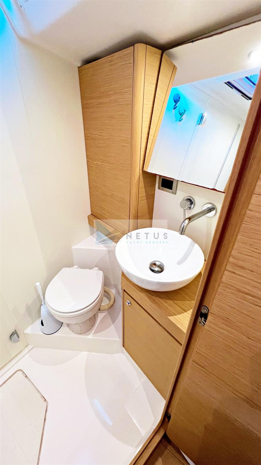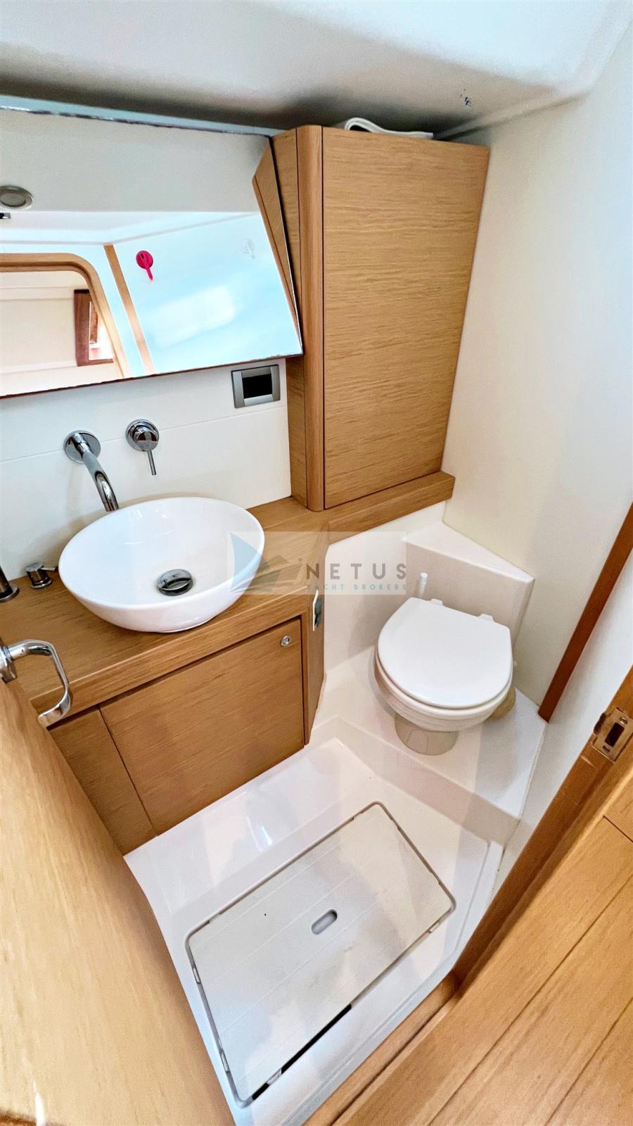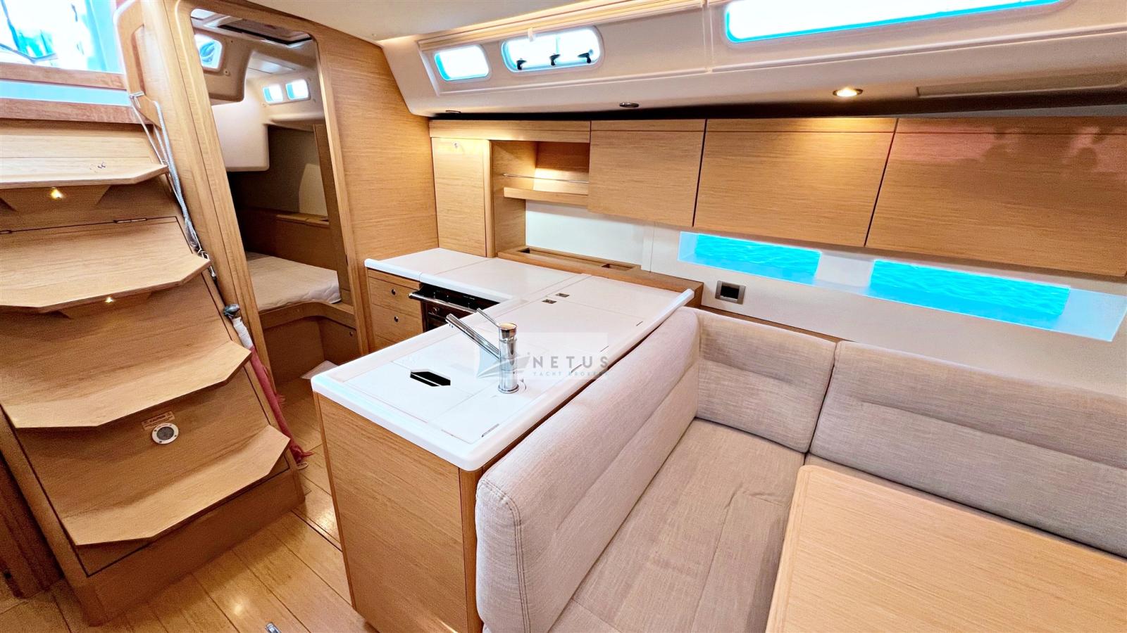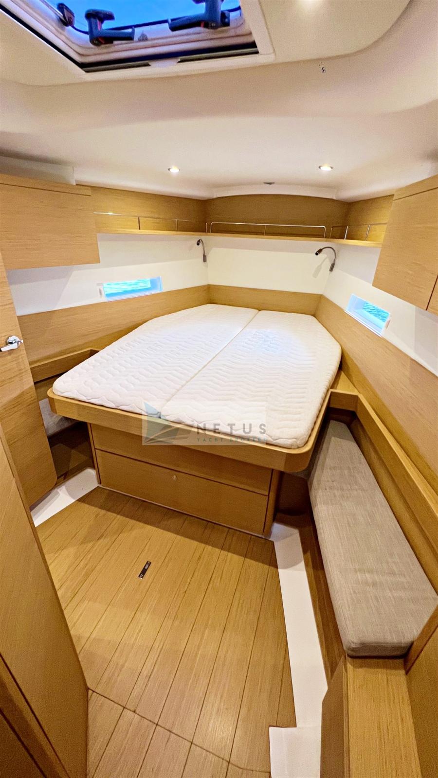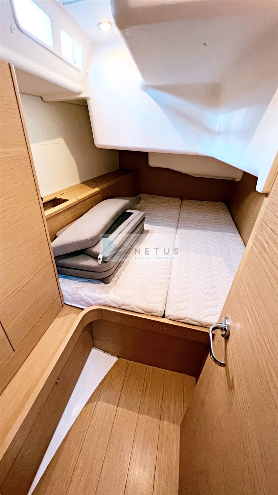 Ancre (Delta), Eau sous pression, Radeau de sauvetage (2022), 3 Batteries, Douche de cockpit, Double barre à roue, Passerelle, Pompe de cale manuelle, Cockpit en teck, Prise de quai, Répétiteur électronique, Guindeau électrique, Gréement Rod, Echelle de bain, Chaise support HB, table de cockpit, Annexe (+outboard engine), Tuff Luff, 5 Winch, Windex.