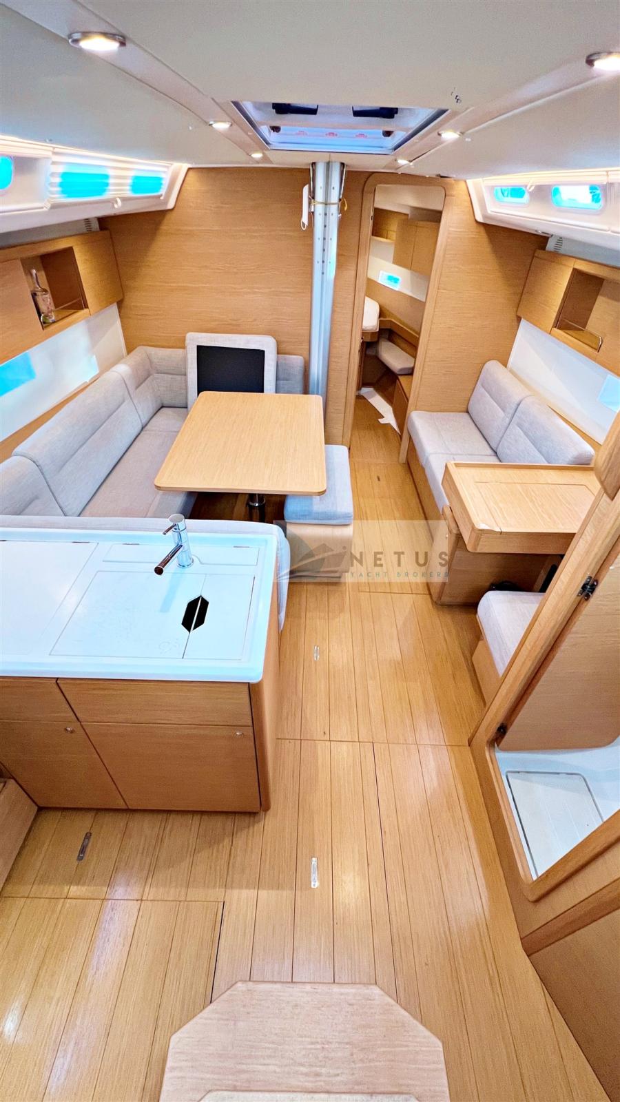 3 cabines, 2 salles de bain avec toilettes électriques. Dinette convertible en lit. Cuisine en forme de L. Instrumentation complète B&G. Arbre en aluminium surdimensionné. Flèche en aluminium. Dauphin surdimensionné. Gréement de tige. Treuil électrique. Cockpit en teck. Bois intérieurs en teck.