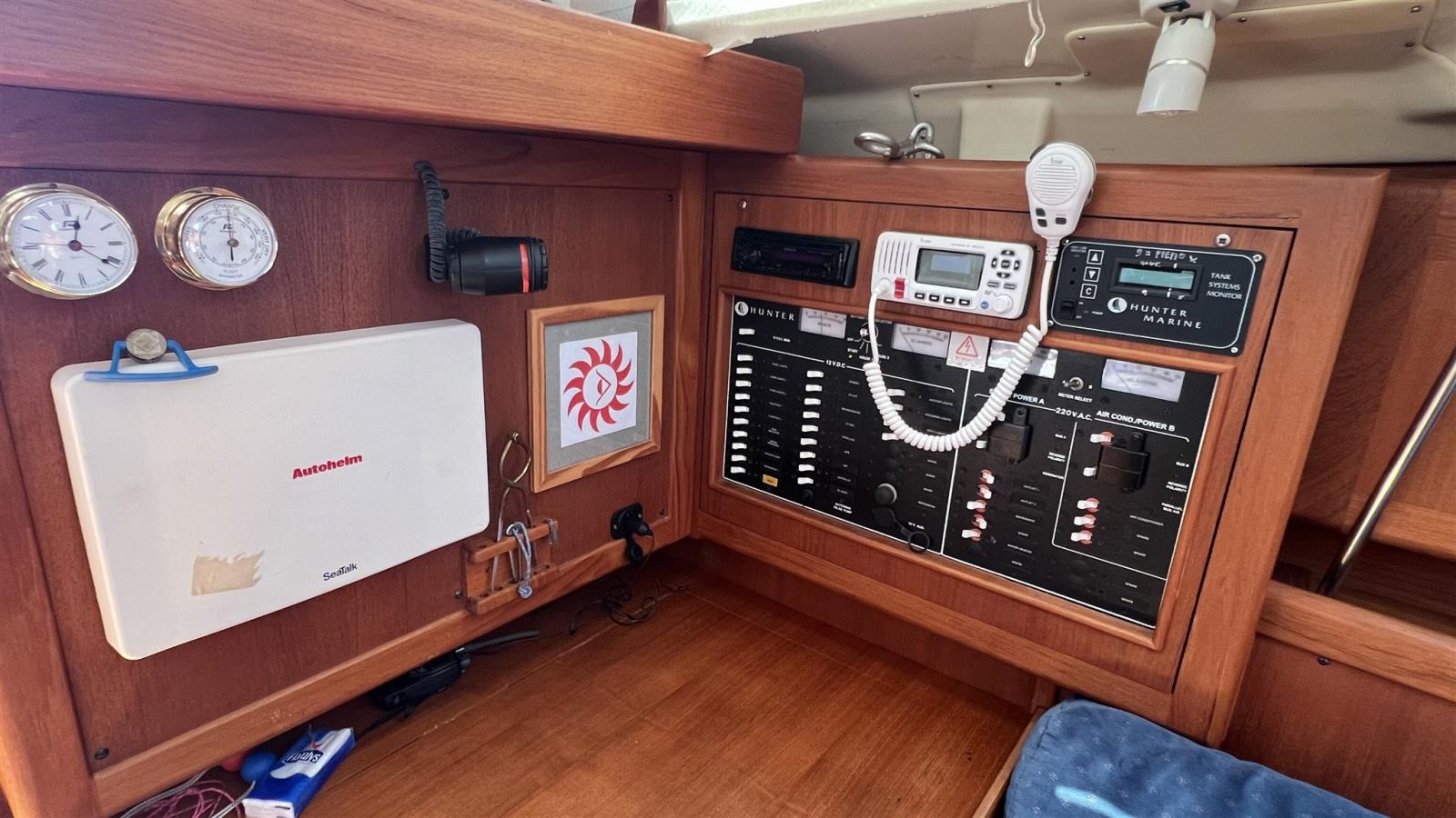 Loch (Raymarine), Sondeur pêche (Raymarine), GPS (Raymarine), Loch (Raymarine), Pilote automatique (Raymarine), Lecteur de cartes (Raymarine), Radar (Raymarine), Radio VHF (Raymarine), Anémomètre/Girouette (Raymarine).