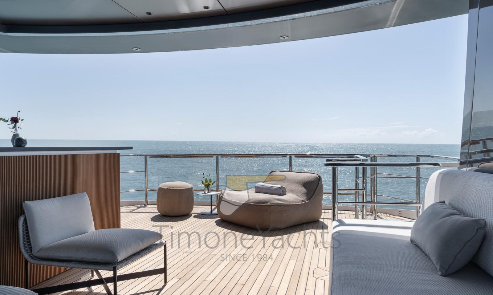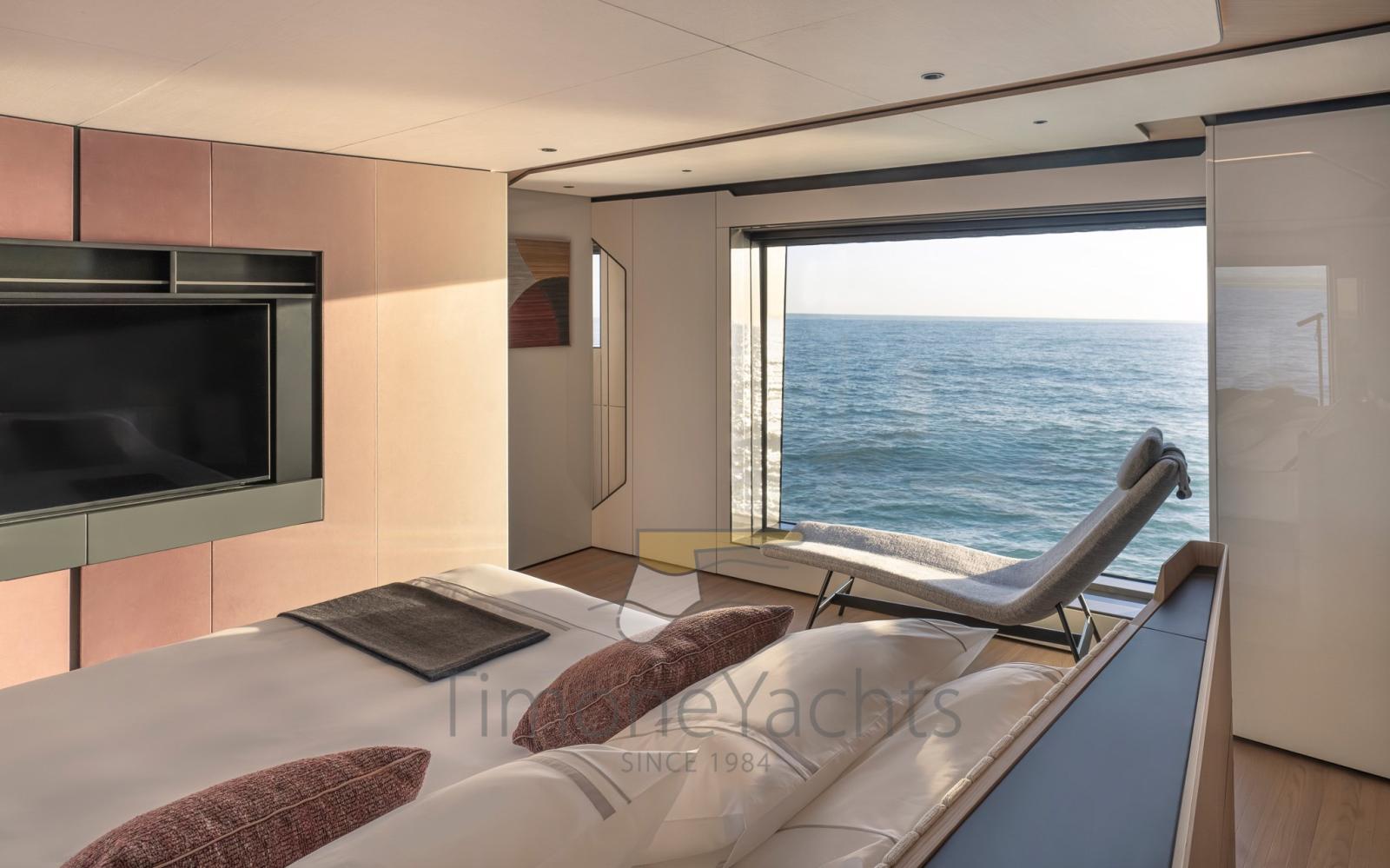 Chaque élément contribue à la création d’un continuum visuel entre les espaces intérieurs et extérieurs, de la terrasse supérieure semi-contournante sans précédent qui inspire la liberté de mouvement aux fenêtres latérales qui s’ouvrent et deviennent un portail spécial vers la mer. Un concept conçu pour un mode de vie sans barrières, qui brouille naturellement les frontières entre le plaisir d’être à bord et le charme de se perdre dans l’océan infini.