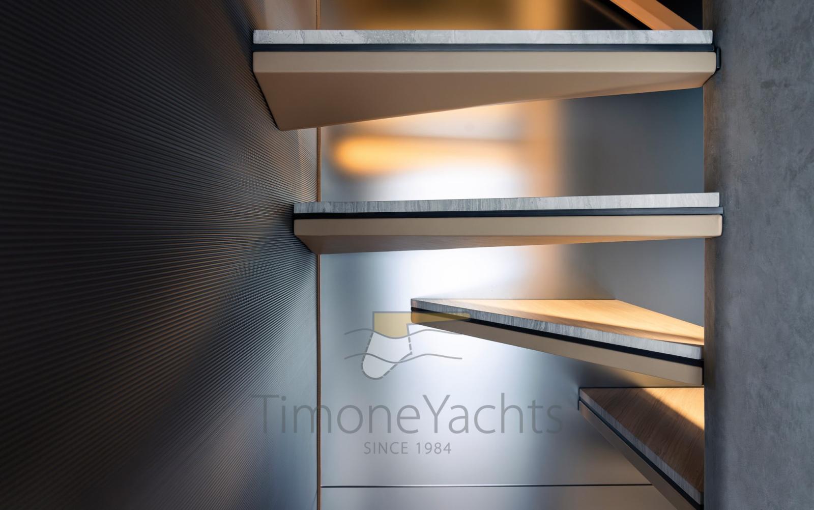 Ensemble, les quatre terrasses totales qui s’étendent sur la mer créent un effet hautement dynamique et immersif, révolutionnant la division traditionnelle des espaces à bord d’une manière contemporaine mais absolument inattendue.