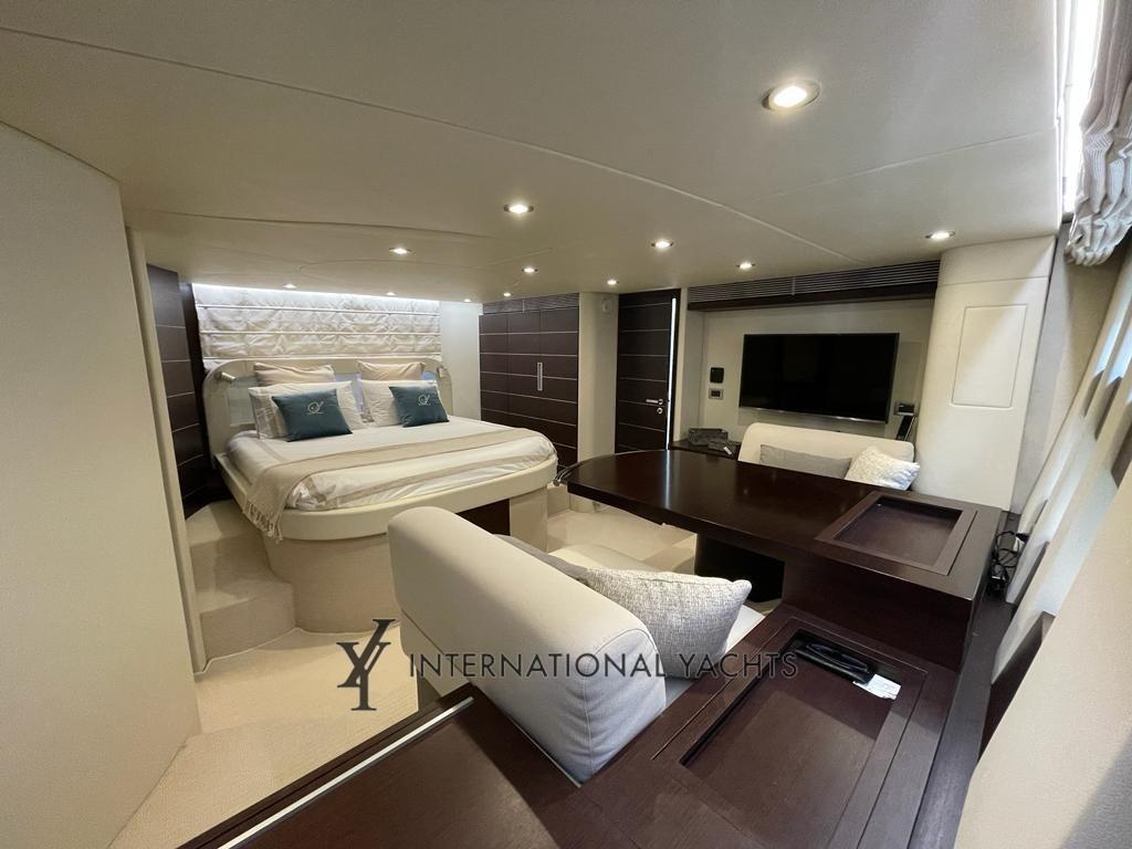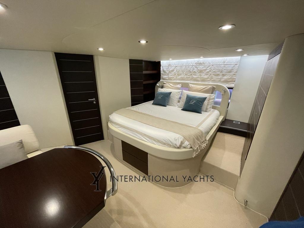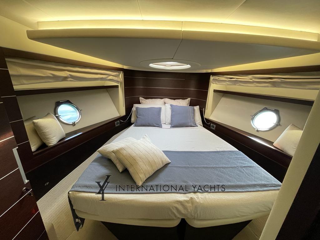 Alarme moteur, Eau sous pression, Passavant en teck, Douche de cockpit, Flaps hydrauliques (N°2), Garage à annexe, Hard top, Lavabo dans le cockpit, Spots sous-marins, Passerelle, Plateforme arrière, Pompe de cale automatique, Cockpit en teck, Prise de quai, Connexion eau sous pression à quai, Onduleur, Rollbar, Guindeau électrique, Echelle de bain, Stabilisateurs (Seakeeper), table de cockpit, Corne.
