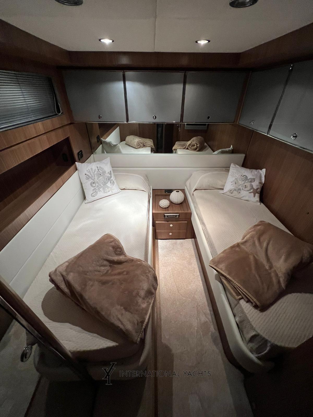 Intérieur avec cuirs neufs 2022 dans les cadres de lit et les cabines.