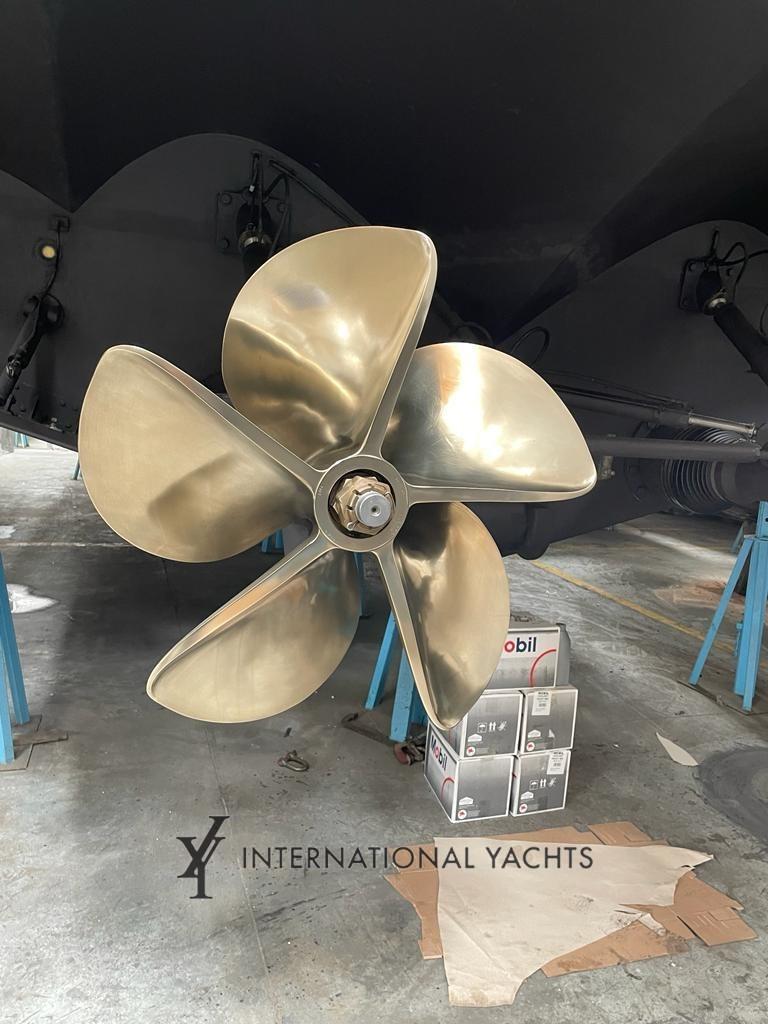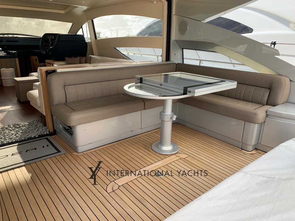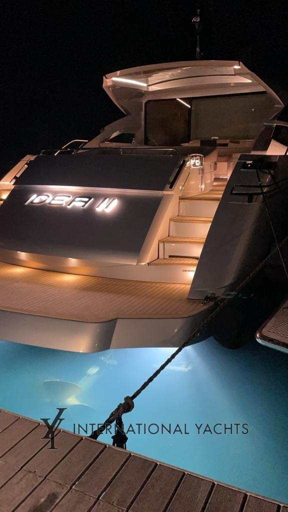 Alarme moteur, Alarme de pompe de cale, Eau sous pression, Flaps hydrauliques, Garage à annexe, Hard top, Éclairage de courtoisie, Spots sous-marins, Passerelle, Pompe de cale automatique, Porte latérale, Cockpit en teck, Prise de quai, Connexion eau sous pression à quai, Guindeau électrique, Echelle de bain, table de cockpit, Annexe (Williams 325), Corne.