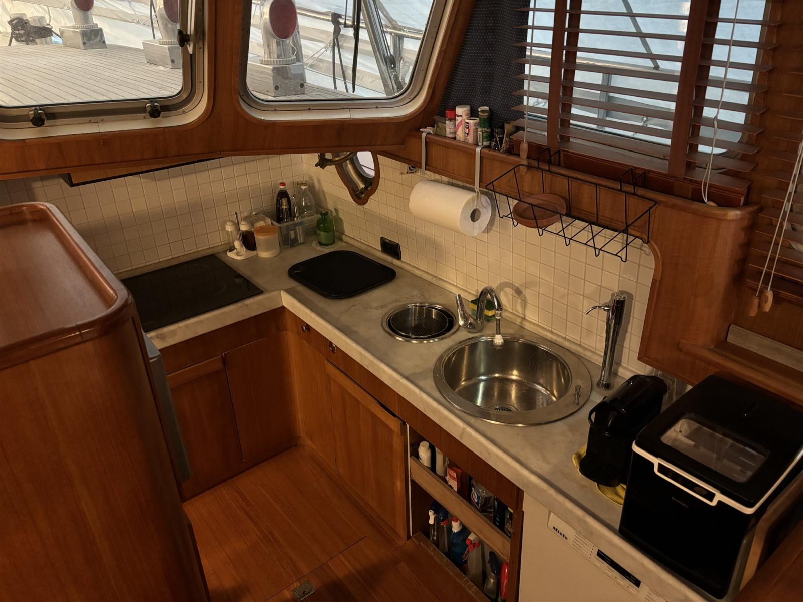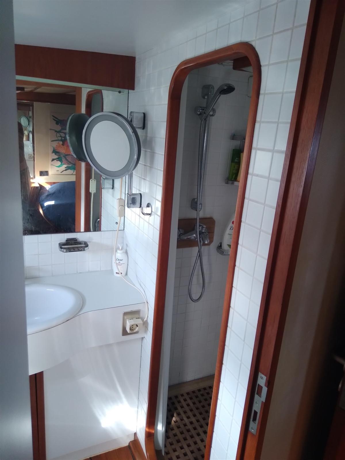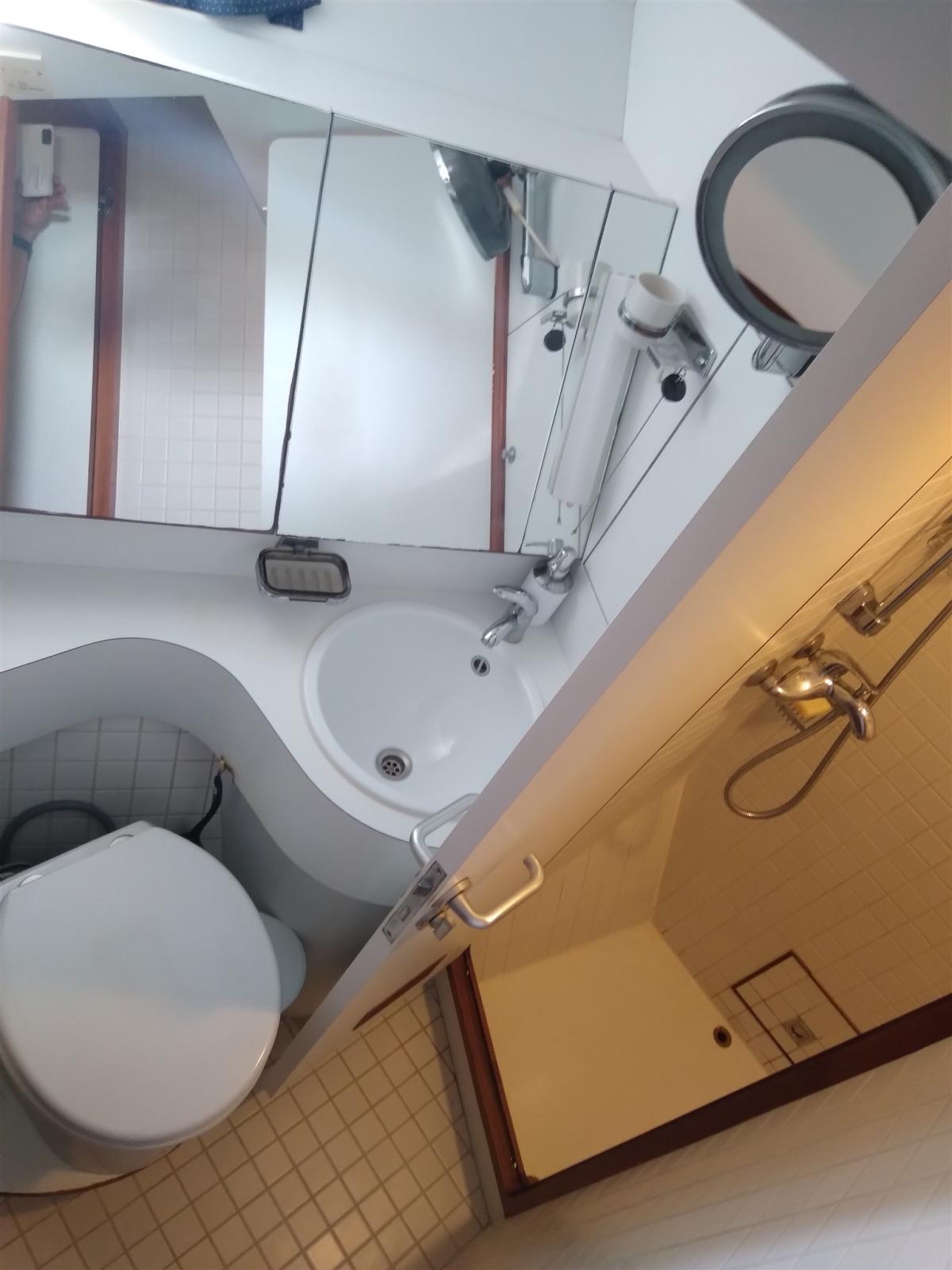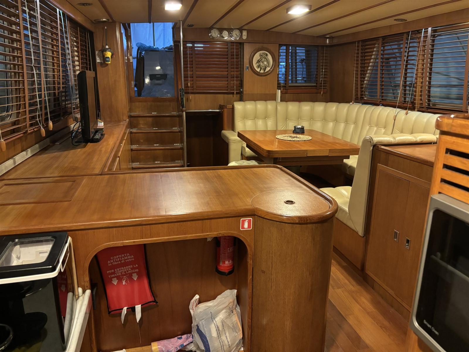 3 Ancre (Spade 55 kg + 100 mt di catena 14 mm- Ammiragliato 40 kg + 100 mt di cavo- Hall 25 kg), 2 Eau sous pression, 7 Batteries (servizi del 2020 - motore del 2016), 2 Chargeur de batterie (Zivan), Douche de cockpit, Double barre à roue, Propulseur d'étrave (con motore da 20 hp), Bossoirs pour annexe (inox), Éclairage de courtoisie, Moteur d'annexe (Honda 10 hp 2018), Passerelle (idraulica - 3 mt - bioinox), 4 Pompe de cale électrique, Pompe de cale manuelle, Cockpit en teck, Prise de quai, Connexion eau sous pression à quai, Guindeau électrique (Lofran's), Gréement monotoron, Echelle de coupée, Stabilisateurs (Maxi Vosper con sistema Quantum ARC 3000 del 2004), table de cockpit, Annexe (Zodiac 3.5 mt), Winch électrique arrière (3.5 kw).