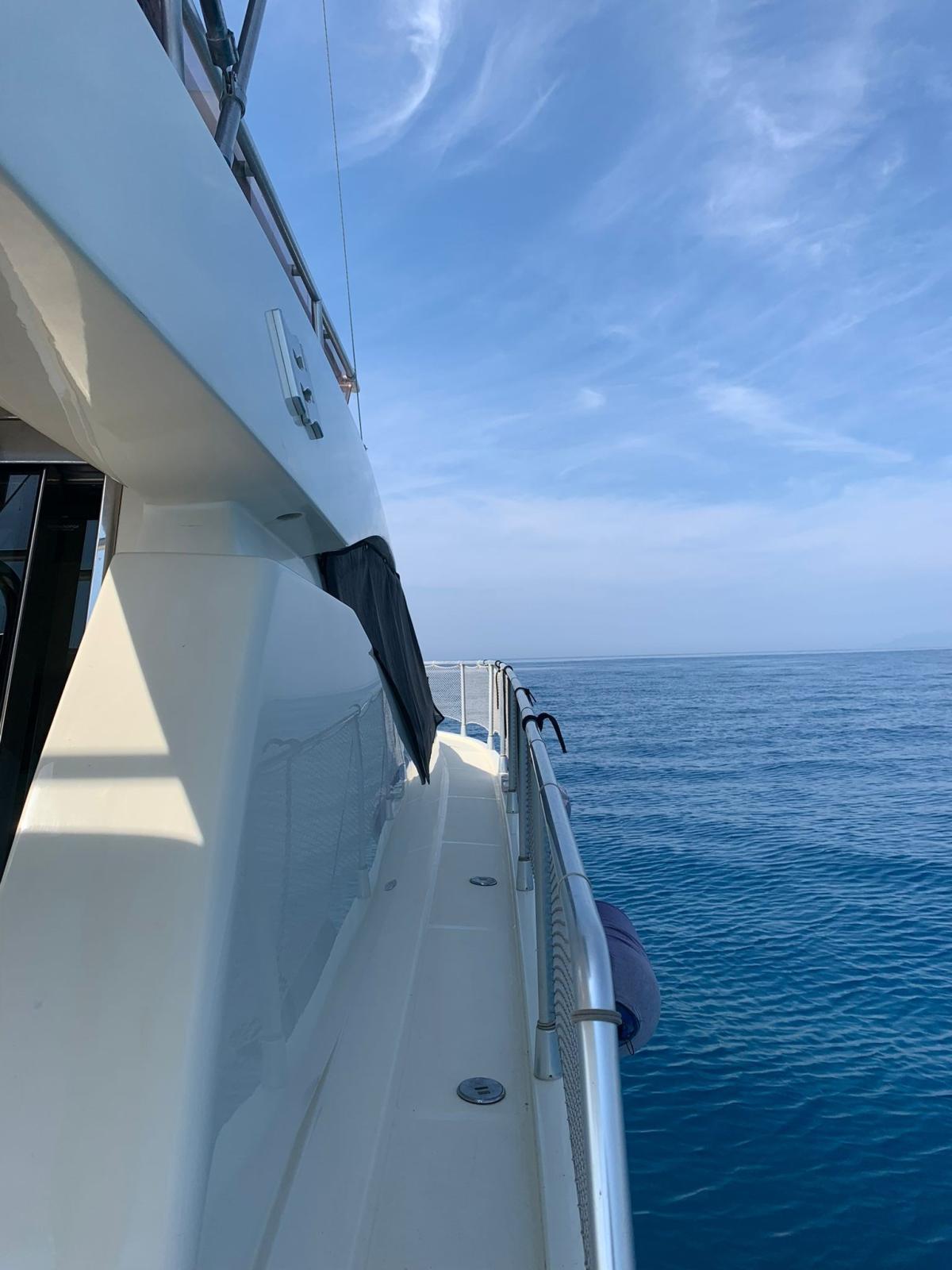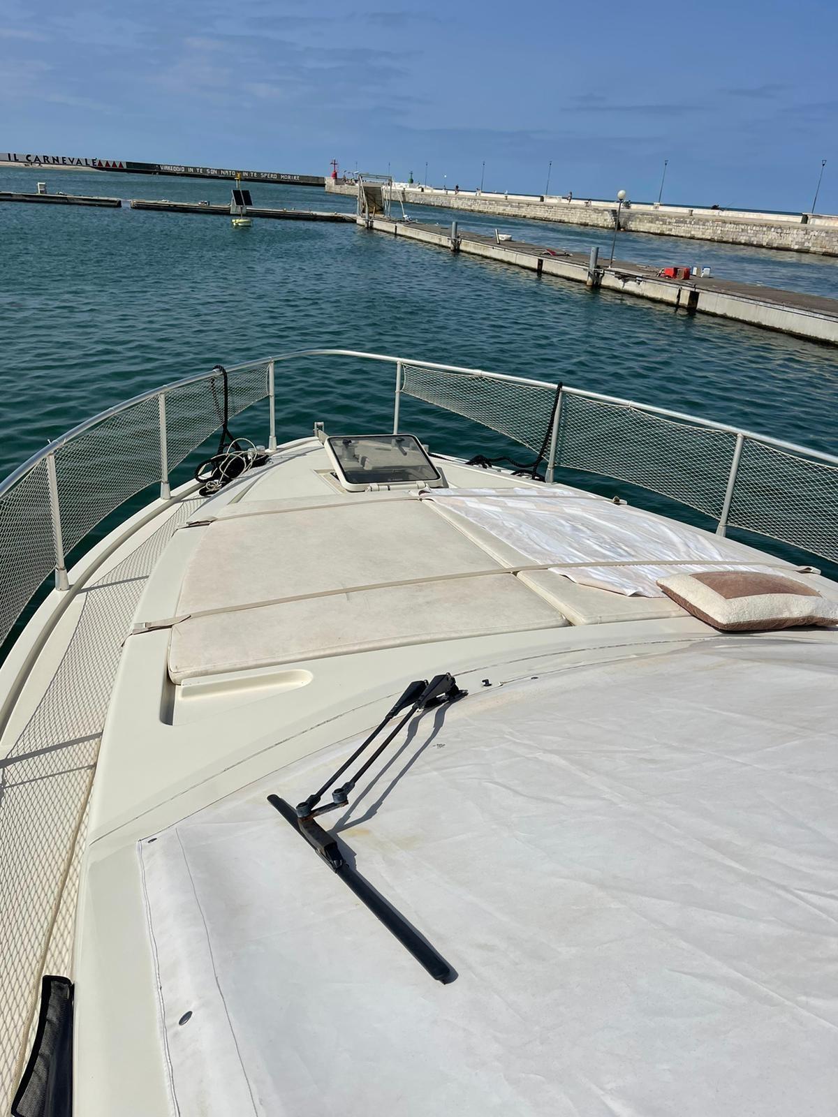 Chargeur de batterie (nuovo 2024), Douche de cockpit, Phare de poursuite, Flaps hydrauliques, Éclairage de courtoisie, Passerelle (idraulica Besenzoni), Cockpit en teck, Guindeau électrique, table de cockpit, Annexe (270cm Brig con motore Mercury 3,5).