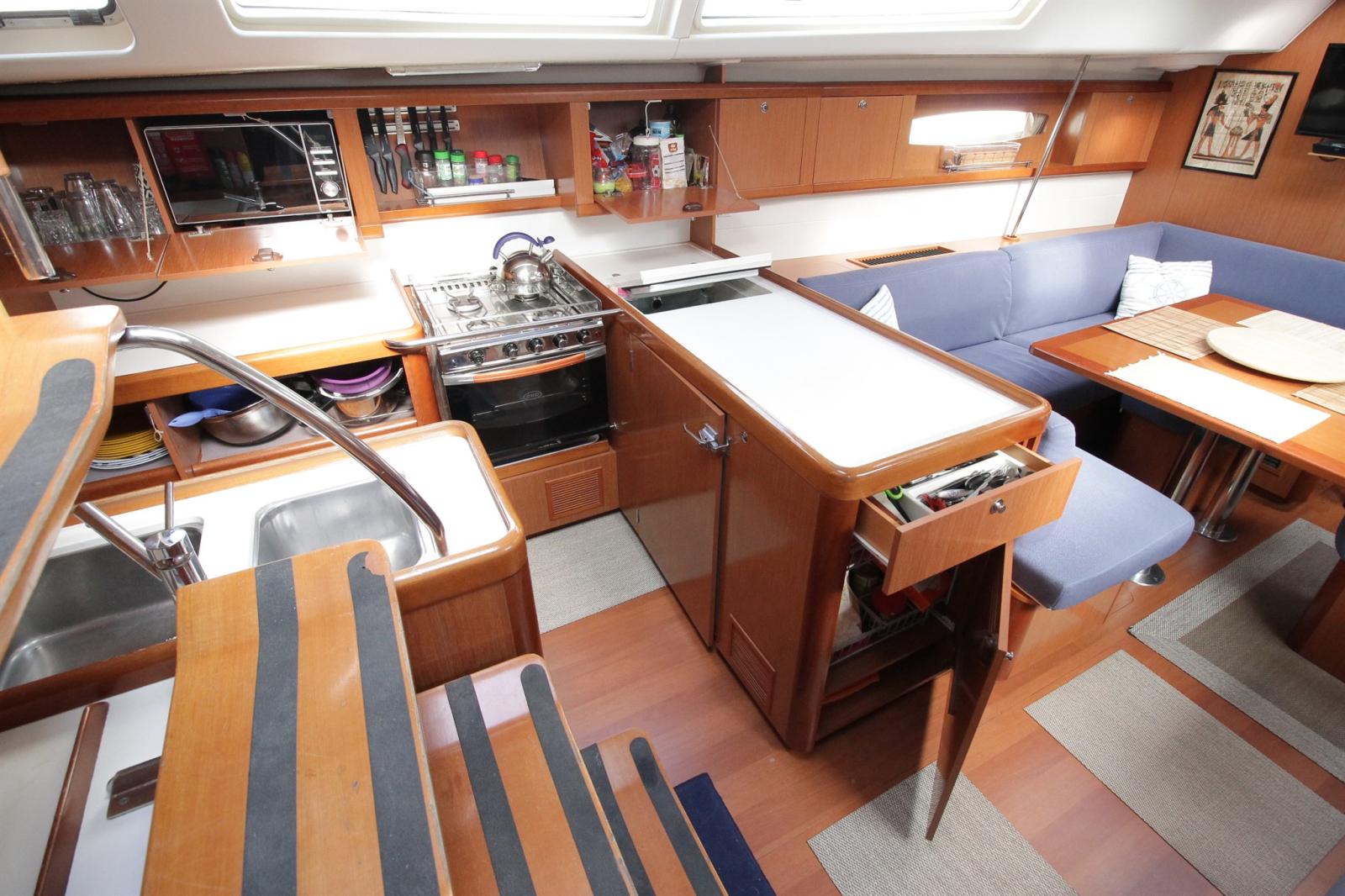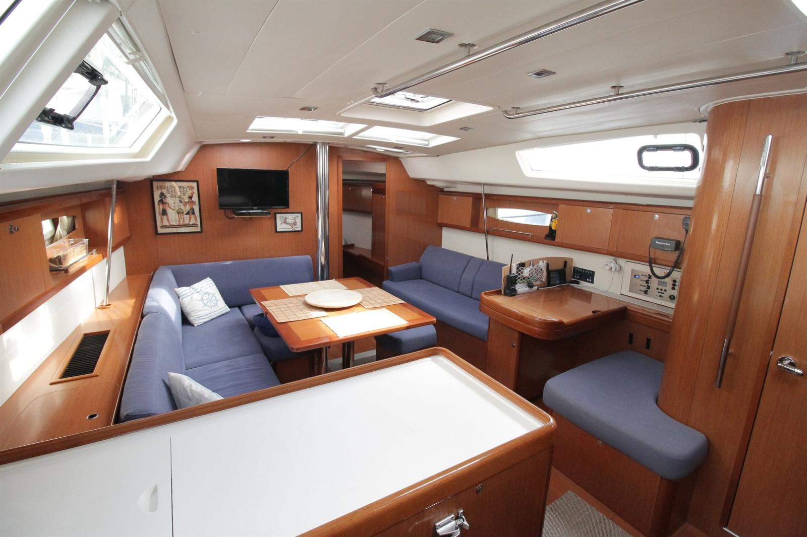 La société PHILIPPE PLAISANCE a le plaisir de vous proposer un OCEANIS 46 en très bon état général. Ce modèle est réputé pour son confort, son agencement et son élégance. Mise à l'eau en 2008, jamais loué, ce voilier est bien équipé et bien suivi : GV sur enrouleur, trinquette sur étai largable, CODE D sur emmagasineur, radar, AIS, portique, 350w de solaire, générateur 6kw, propulseur, batteries AGM, 2 climatisations, 2 frigos, etc... Visible sur la Costa Brava. Possibilité de place de port