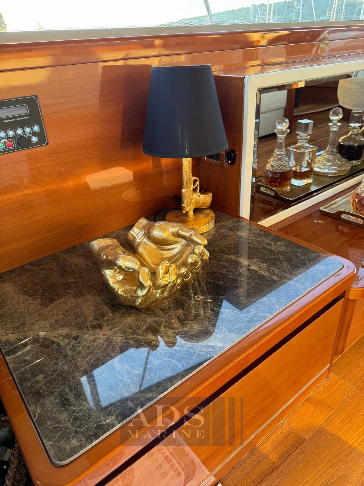 Coûts de la navigation NEUVE, du propulseur de poupe NEUF, de la machine à glaçons NEUVE, des tapis NEUFS, de la chaîne d’ancre NEUVE, des écrans électriques NEUFS, du système de sonorisation NEUF : 23 000 €