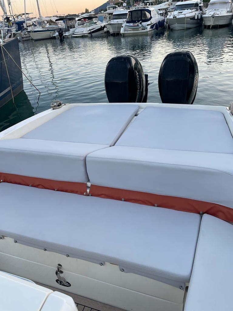 Sellerie complète (cockpit), Supplément bain de soleil (bow and stern cushions), Taud de soleil.