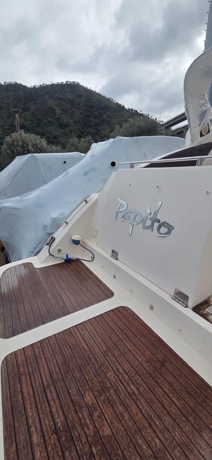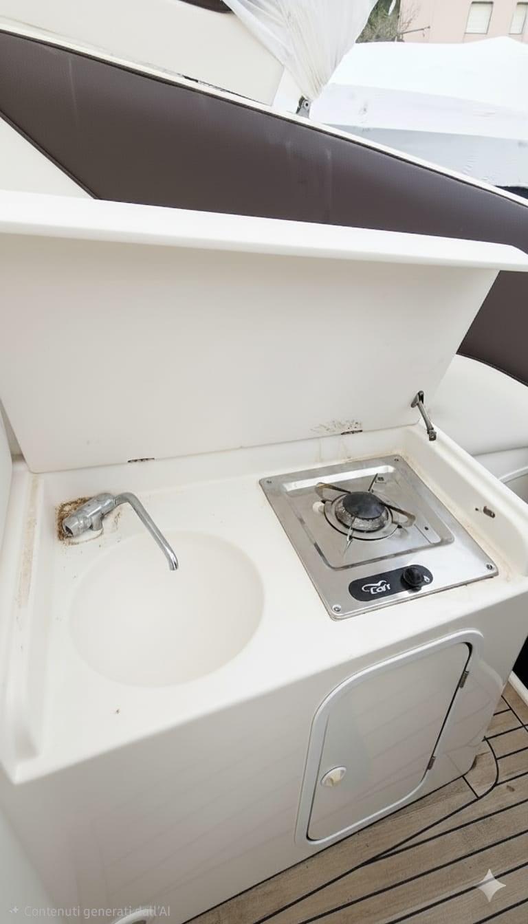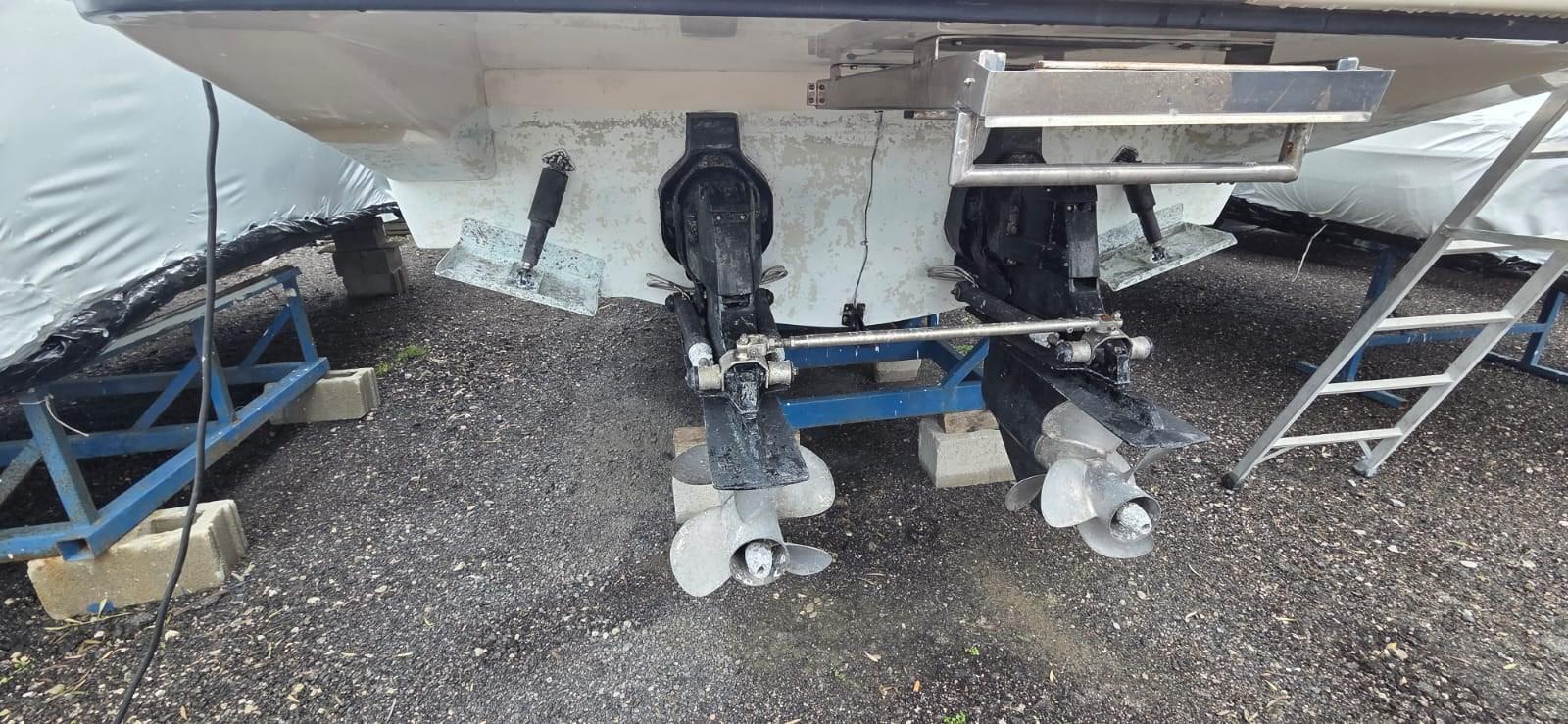 Alarme moteur, Ouverture du compartiment moteur électrique, Eau sous pression, 4 Batteries (2025), Douche de cockpit, Flaps électriques, Flaps hydrauliques (N°2), Défenses, Plateforme arrière, Pompe de cale automatique, Cockpit en teck (2023), Prise de quai, Onduleur, Rollbar, Guindeau électrique, Echelle de bain, table de cockpit (con piede telescopico), Corne.
