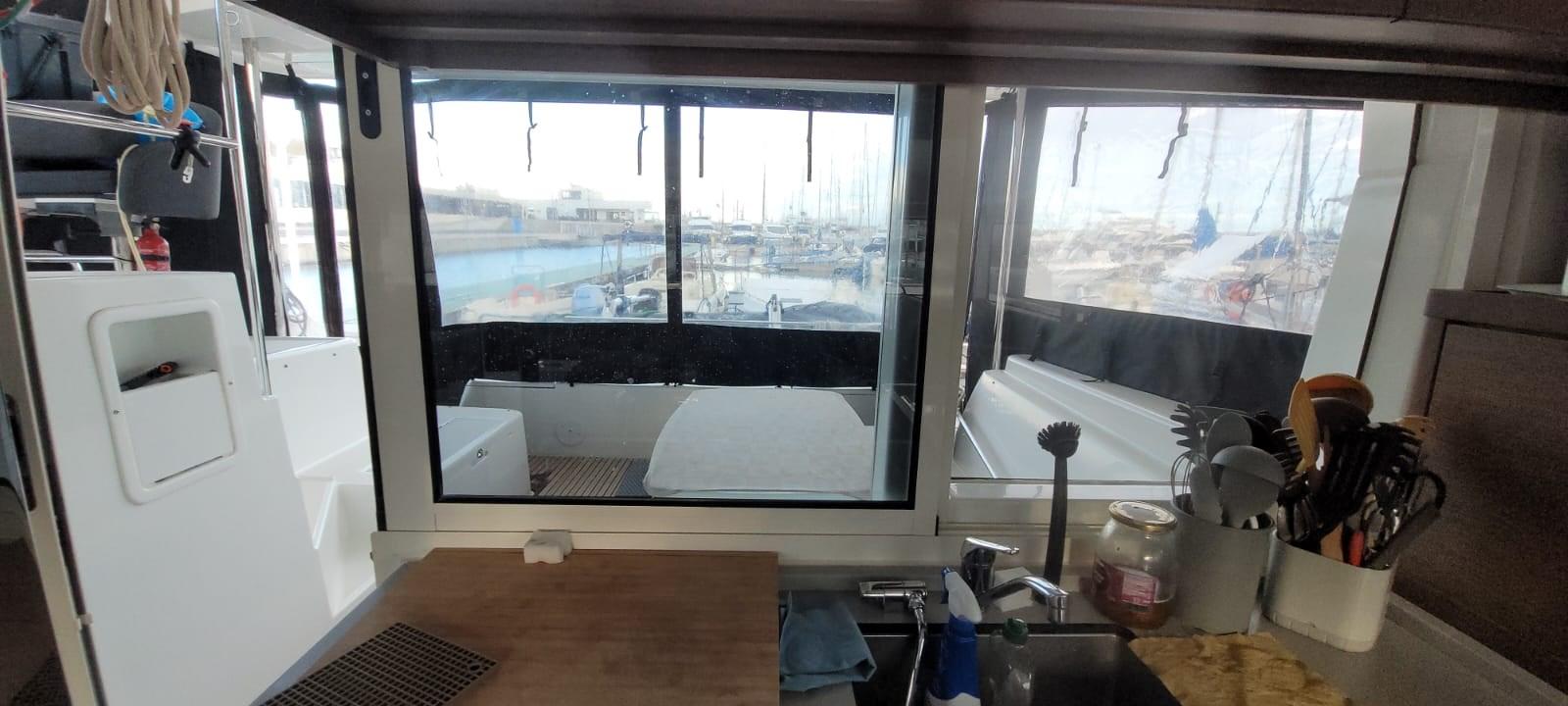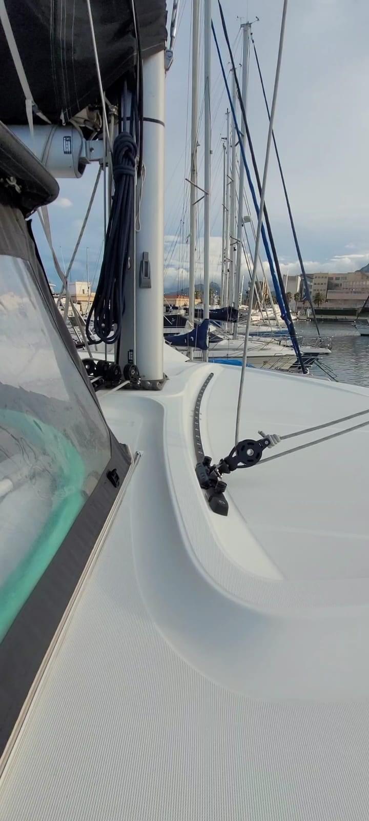 Eau sous pression, 4 Batteries, Bossoirs pour annexe, Panneau solaire, Pompe de cale automatique, Pompe de cale manuelle, Cockpit en teck, Prise de quai, Guindeau électrique, Gréement monotoron, Echelle de bain, table de cockpit, Annexe, Winch.