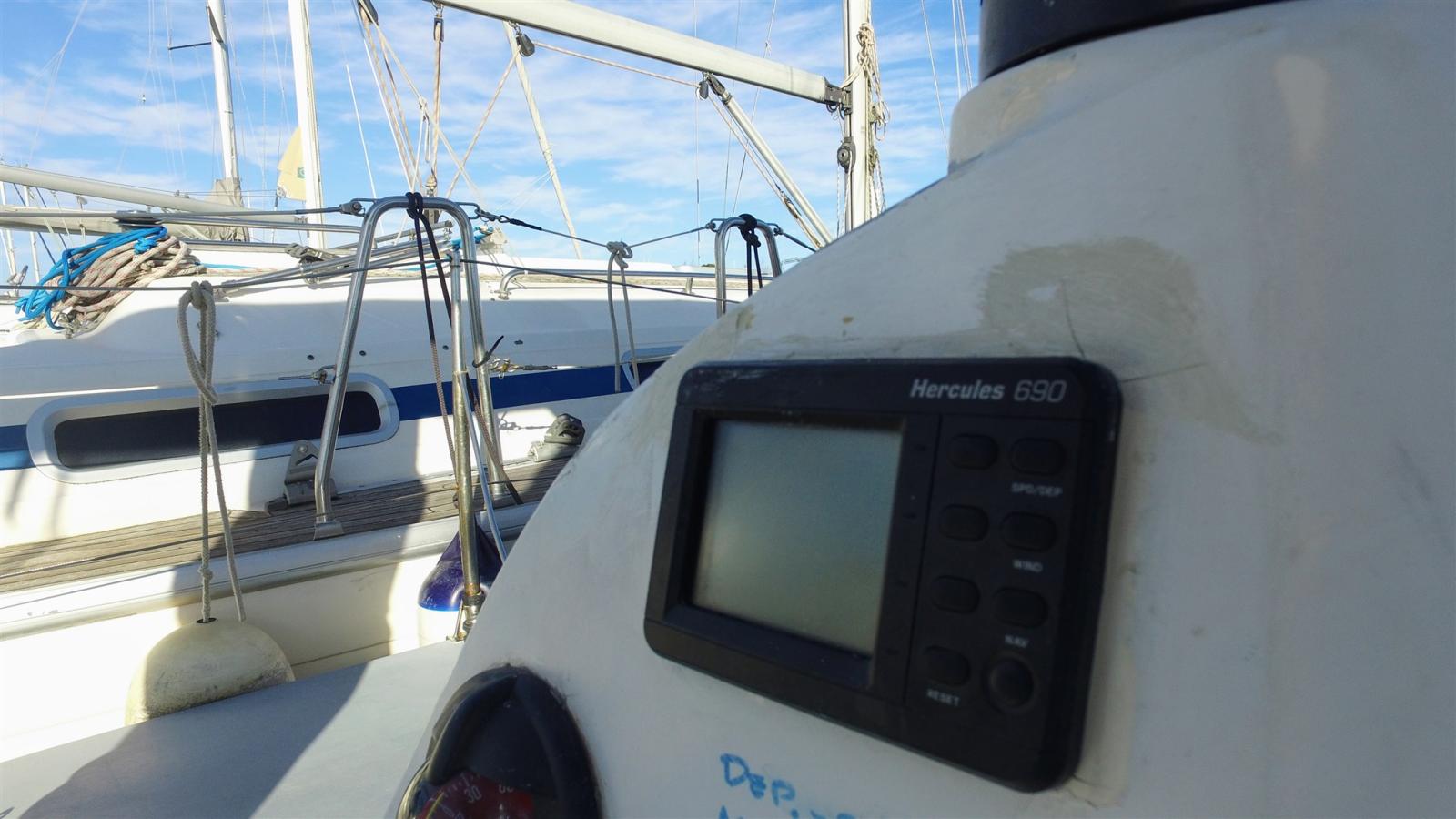 Loch (B&G), Pilote automatique (B&G sur secteur avec giro de 2024), Plotter GPS, Radio VHF (Shipmate), Jumbo (3 écrans), Sondeur (B&G), Anémomètre/Girouette (B&G).