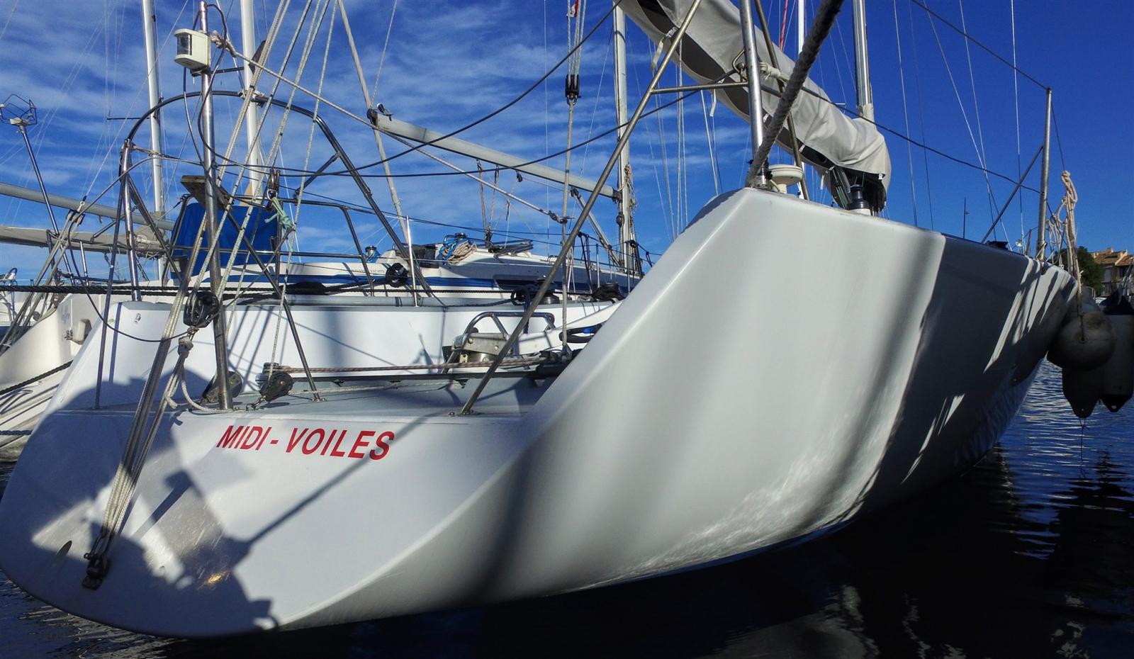 Ce plan Bruce Farr a déjà fait ses preuves sur de nombreux plan d'eau. Ce modèle a été optimisé avec le changement du mat pour un modèle à barres de flêche poussantes et sans bastaque .