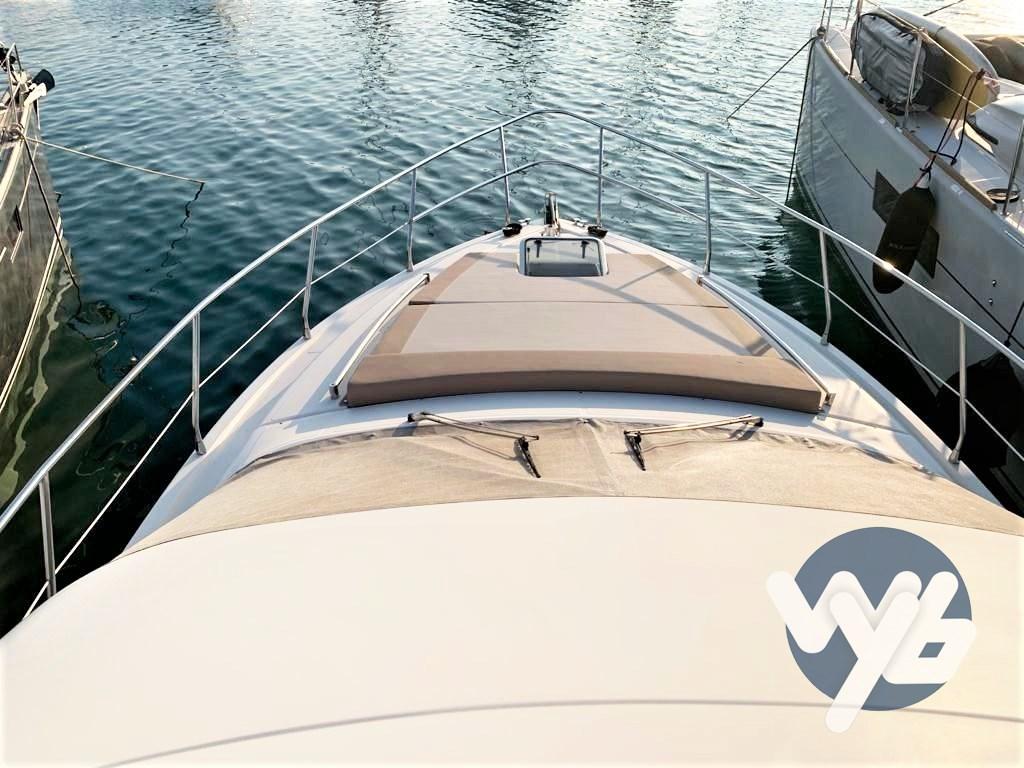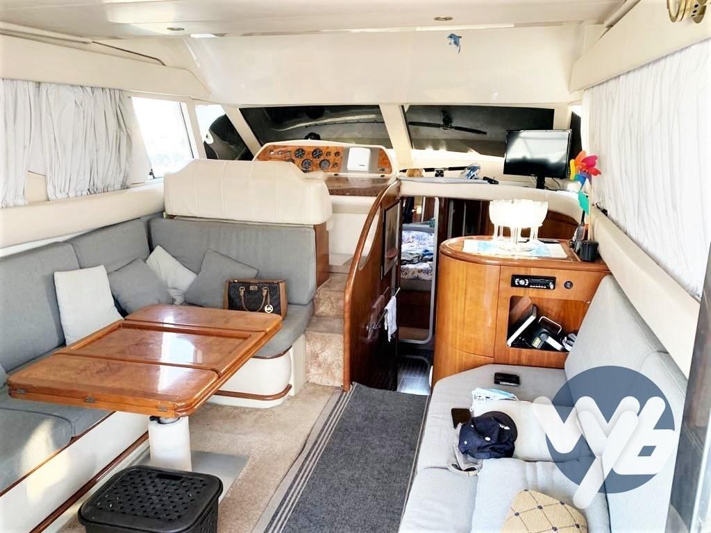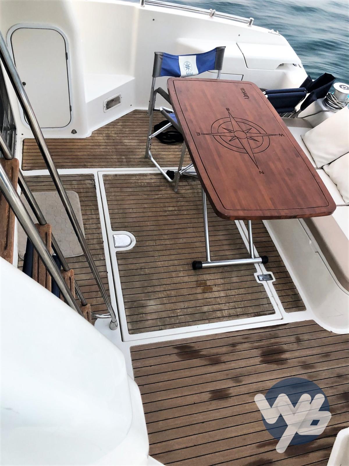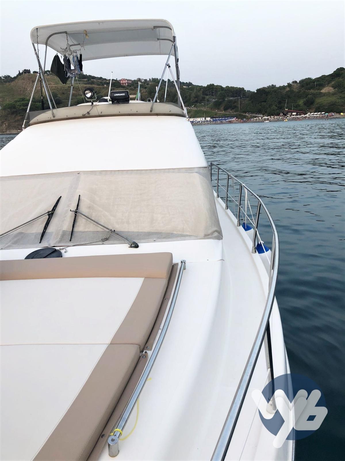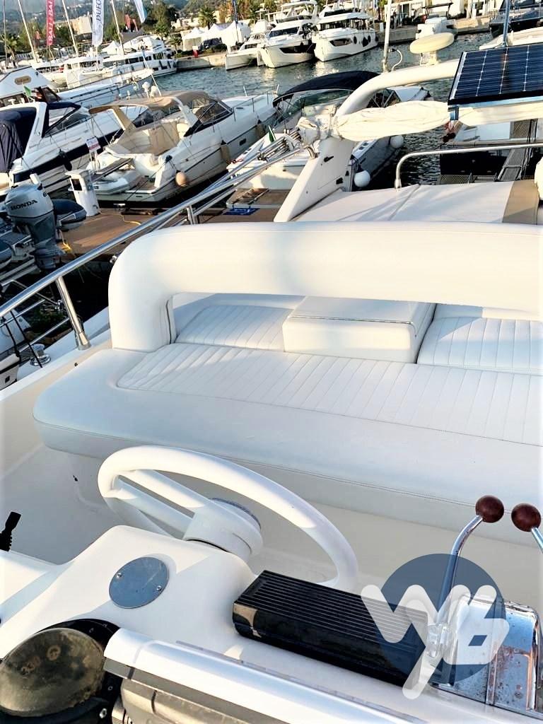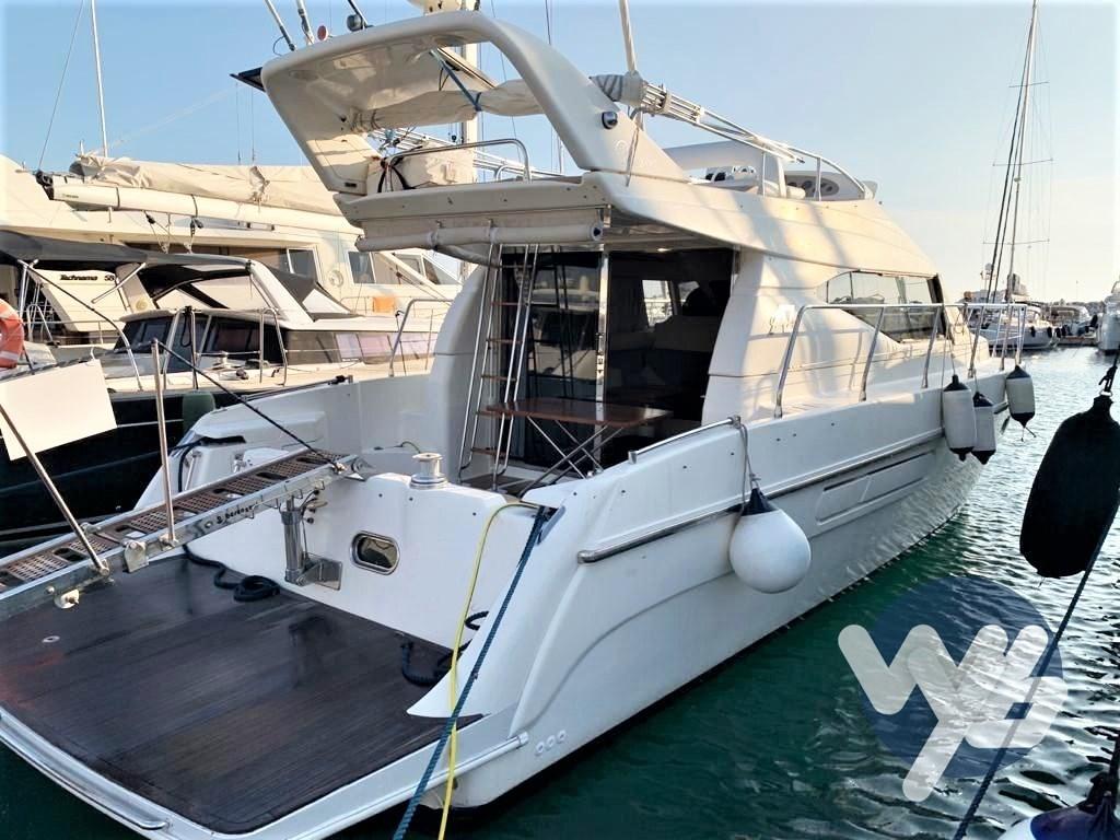 Alarme moteur, Alarme de pompe de cale, Eau sous pression, 4 Batteries, Douche de cockpit, Double barre à roue, Phare de poursuite, 2 Flaps hydrauliques, Extincteur(s) fixe(s), Passerelle, Plateforme arrière (Allungata), Pompe de cale manuelle, Porte latérale, Cockpit en teck, Prise de quai, Guindeau électrique, Echelle de bain, table de cockpit, Annexe.