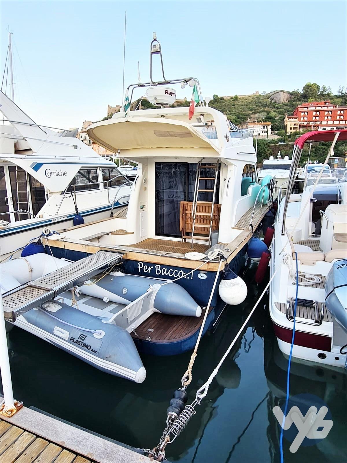 Alarme moteur, Alarme de pompe de cale, Eau sous pression, Passavant en teck, Douche de cockpit, Double barre à roue, Phare de poursuite, Flaps hydrauliques, Passerelle, Pompe de cale manuelle, Porte latérale, Cockpit en teck, Prise de quai, Guindeau électrique, Echelle de bain.
