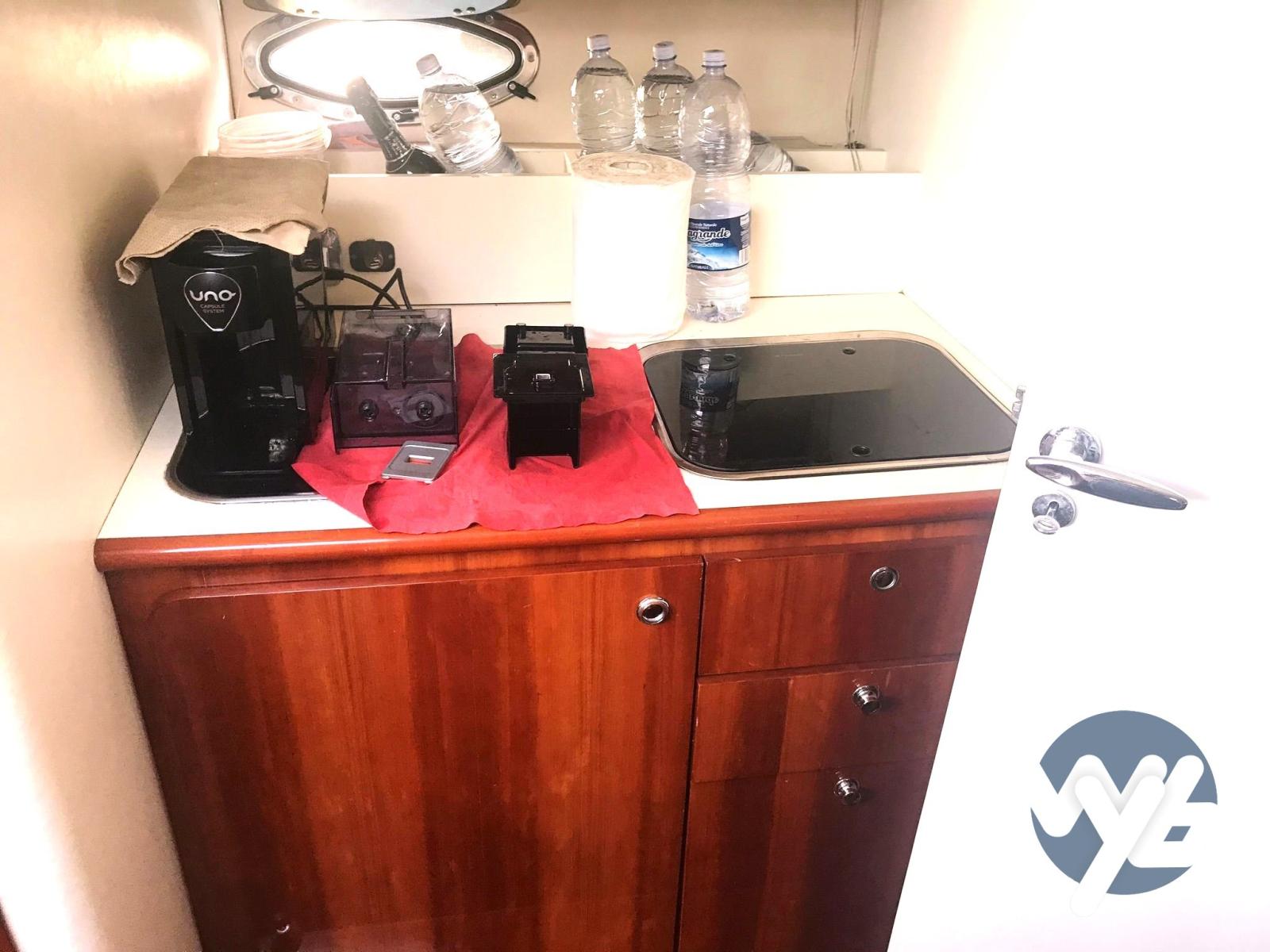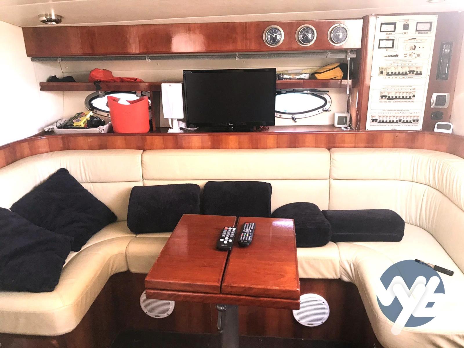Alarme moteur, Alarme de pompe de cale, Eau sous pression, Douche de cockpit, Flaps hydrauliques, Passerelle, Pompe de cale manuelle, Porte latérale, Cockpit en teck, Prise de quai, Rollbar, Guindeau électrique, Echelle de bain.
