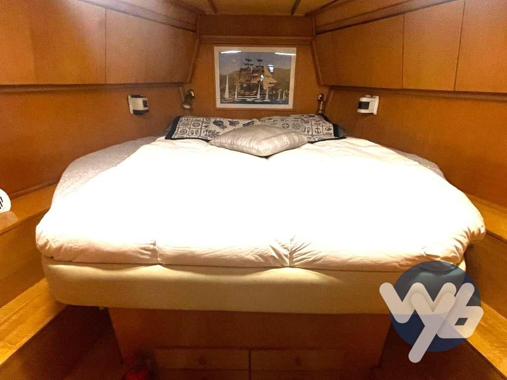 Hull porté à la résine, application de nouveau gelcoat et traitement antiosmose. Garantie de cinq ans.