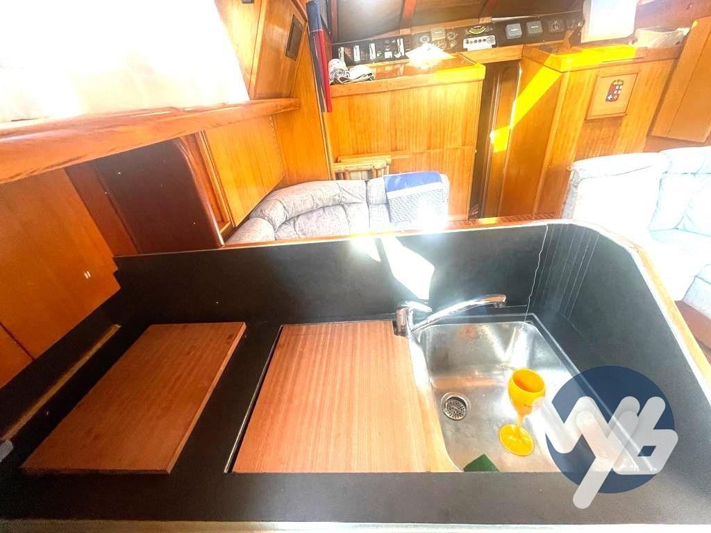 Remplacement de toutes les prises d’eau de mer. Drisses de remplacement. Gréement vérifié. Nouvelles voiles : trinchetta et gênes. 2 treuils électriques pour les pieds