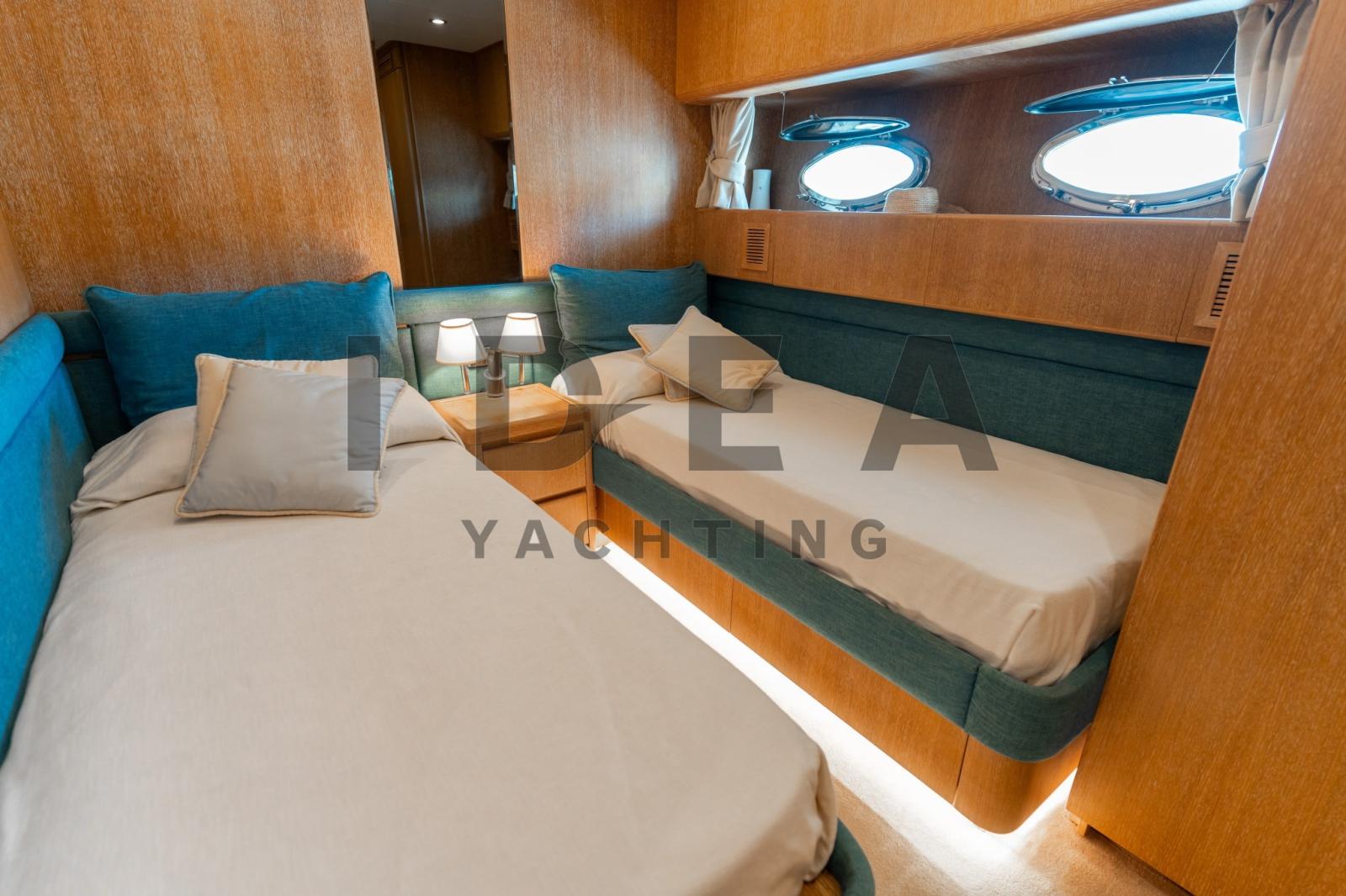 Le M/Y WARLOCK peut accueillir confortablement jusqu’à 8 personnes dans ses 4 belles cabines, toutes avec salle de bain attenante. Il y a 2 cabines d’équipage, une avec un lit simple et une avec un lit superposé, toutes deux avec leur salle de bain privée.