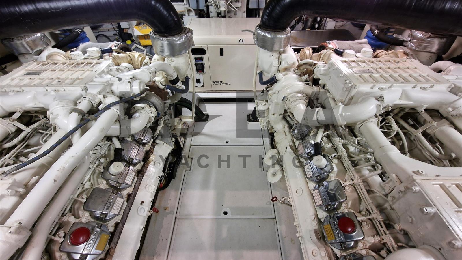 Les moteurs MAN 1550 avec Arneson Surface Drives propulsent le yacht à une vitesse de croisière douce de 35 nœuds et à une vitesse de pointe de plus de 43 nœuds.
