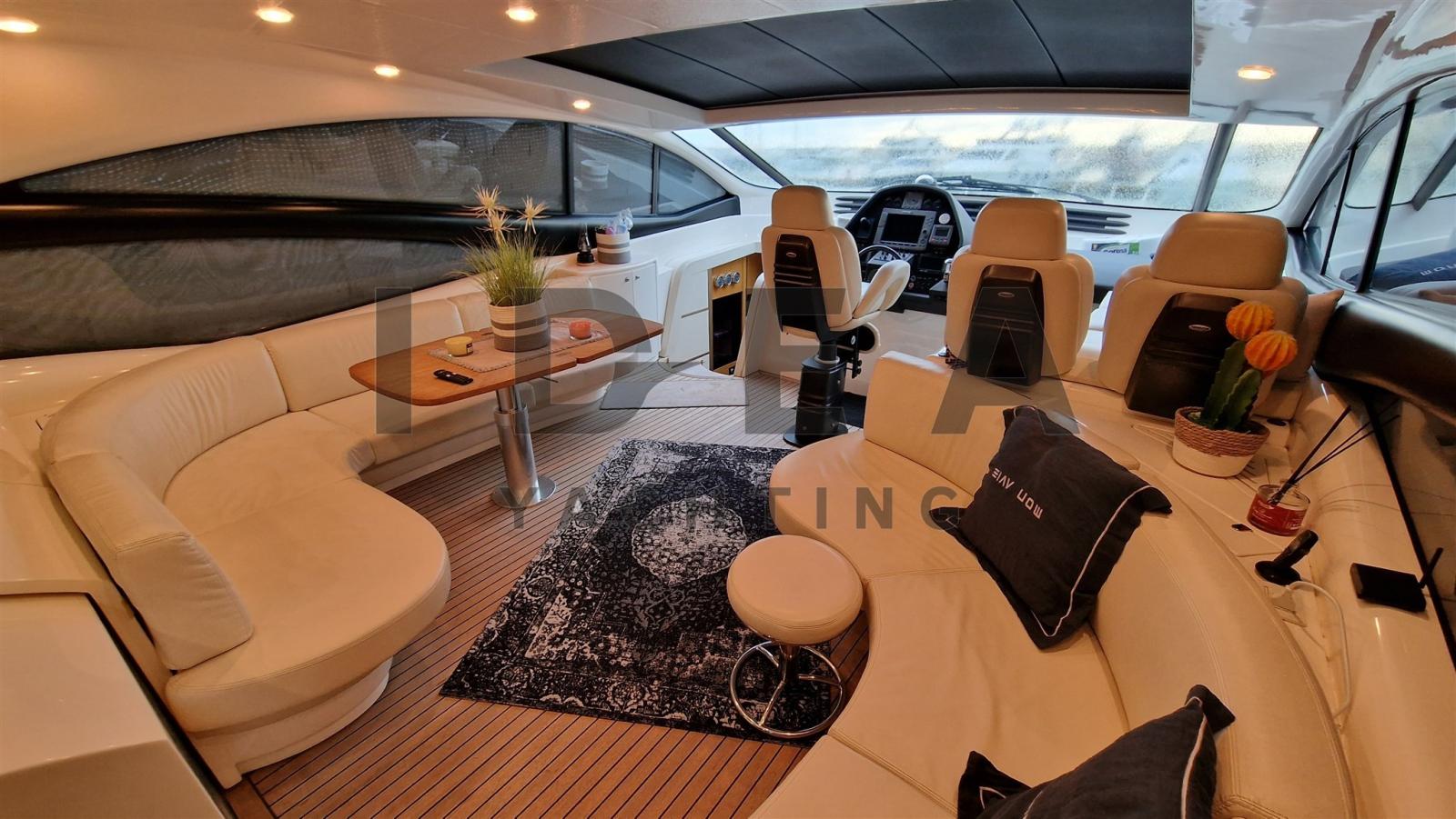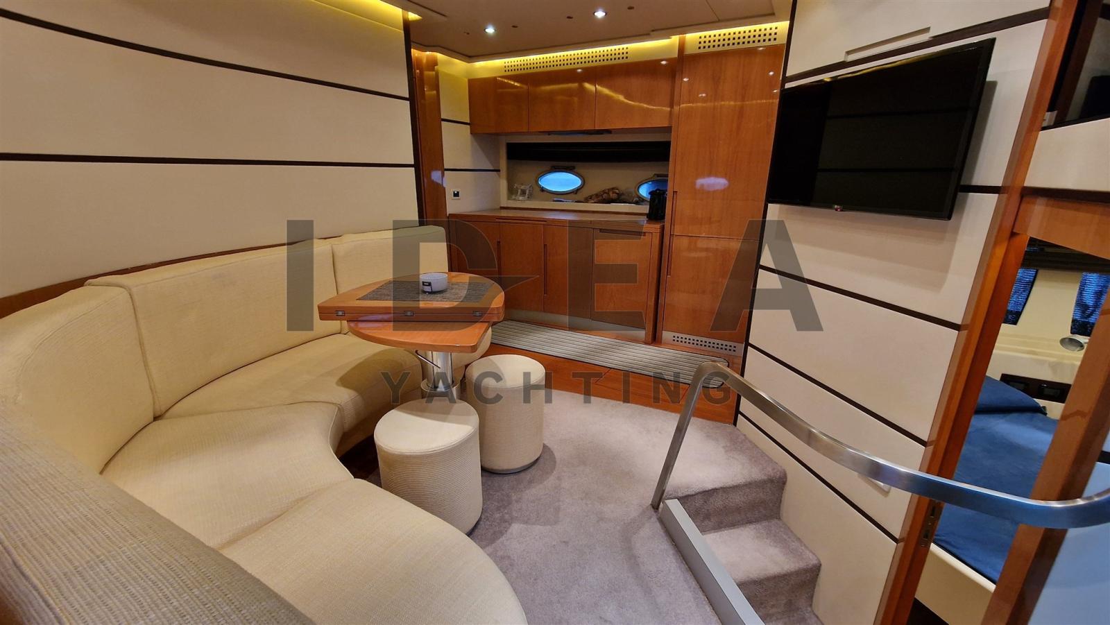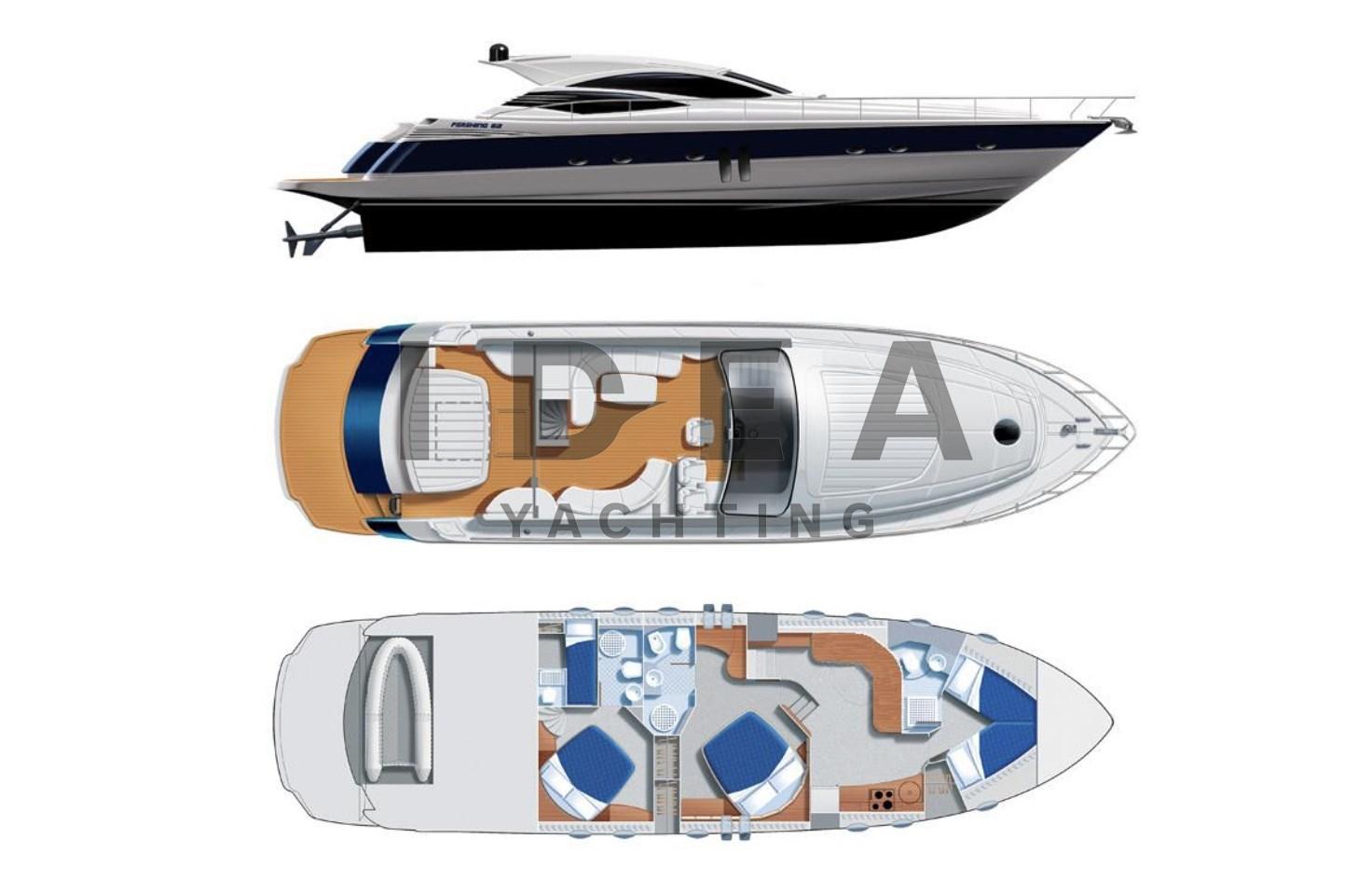 Le Pershing de 62' est élégant et élancé et conçu pour la vitesse avec des lignes agressives et une personnalité sportive. Il y a une vue à 360 degrés depuis la barre avec un grand salon et des fenêtres arrière, un grand toit ouvrant et une excellente visibilité. Le yacht est conçu avec une cabine principale pleine largeur située au milieu du navire, une cabine VIP arrière et une cabine invités, toutes avec des salles de bain privées et des quartiers d’équipage pour une personne. Le salon inférieur dispose d’un salon en forme de L avec table et une cuisine complète. Le salon principal, situé sur le pont principal, dispose de canapés en vis-à-vis, d’un siège de barre et de sièges d’équitation jumeaux.