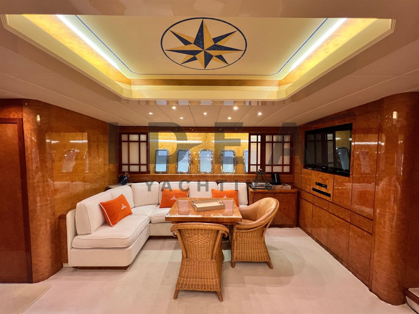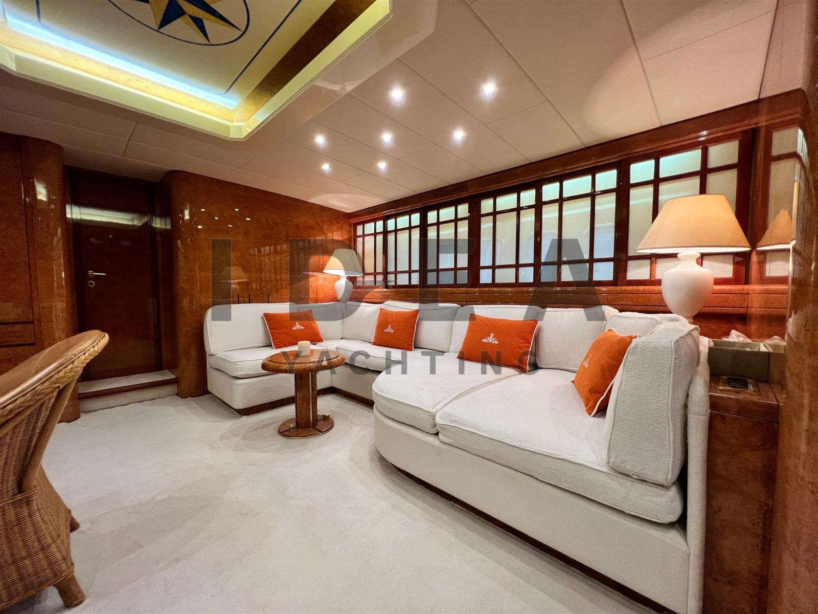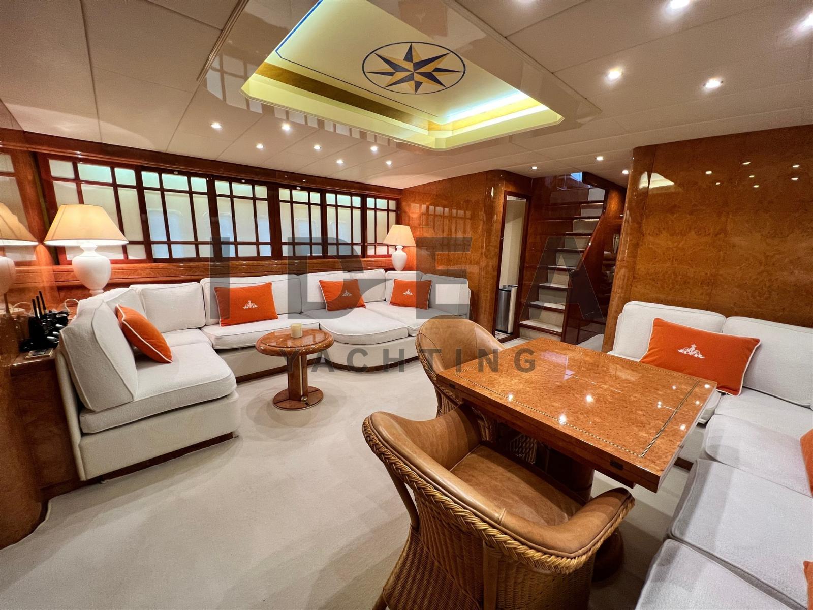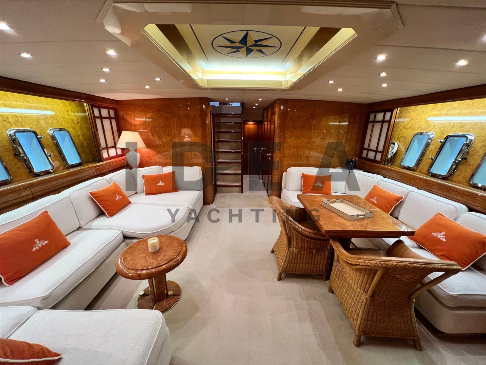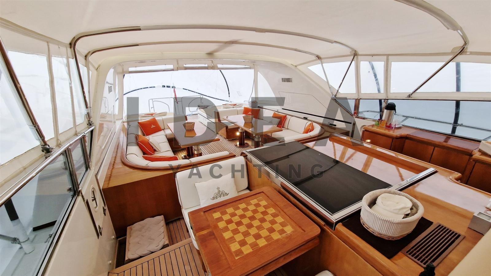 Doté d’un aménagement méticuleusement conçu, ce yacht est réputé pour son espace et son luxe absolu. Les clients sont accueillis dans un somptueux salon, complété par une cuisine entièrement équipée et quatre cabines indulgentes. Les détails en bois méticuleux, la sellerie haut de gamme et la décoration soigneusement sélectionnée mettent en valeur la qualité luxueuse du navire.