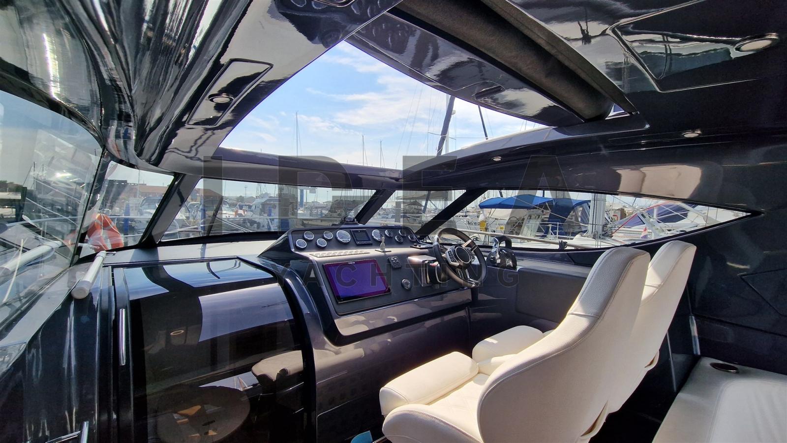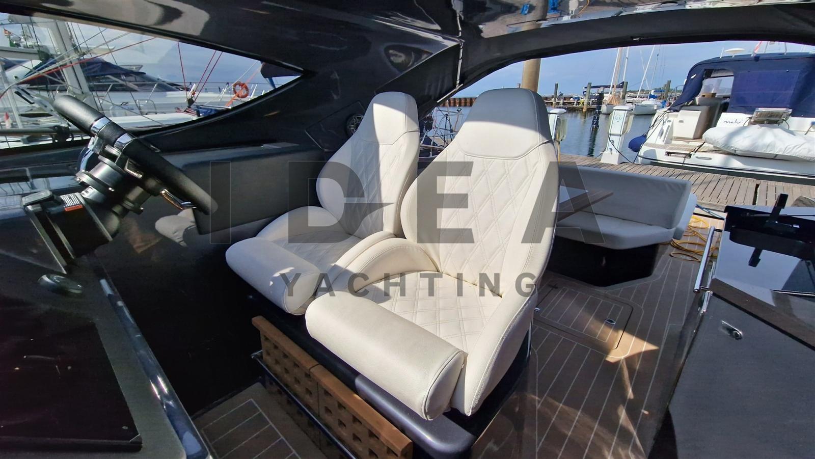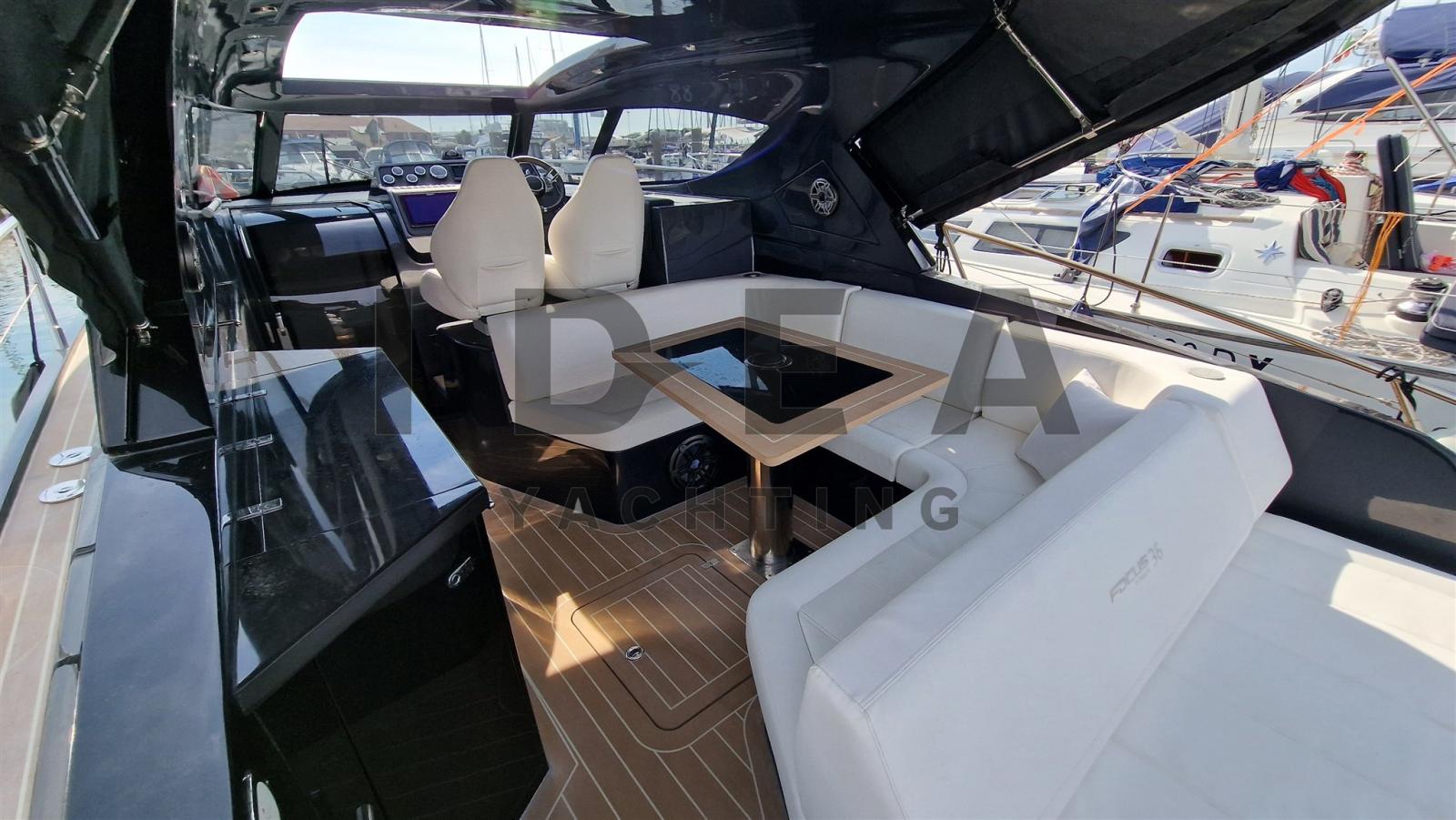 Avec sa coque et ses topsides noir de jais, contrastant avec les ponts en teck synthétique et les aciers personnalisés, la nouvelle Focus Power 36 GTX en édition limitée est sans aucun doute un beau bateau et l’aménagement est également de première classe. Les espaces du pont inférieur et les sièges du cockpit sont doublés de cuir italien et tous les équipements proviennent des marques les plus exclusives au monde.