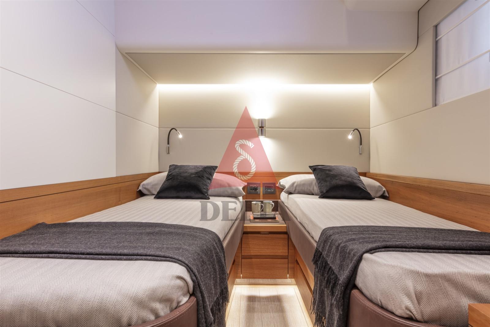 La cabine du propriétaire avec son intérieur élégant généreusement dimensionné, canapé et armoires spacieuses, est situé au centre du bateau et tire parti de la largeur maximale du bateau. La cabine VIP avec salle de bains privée est disponible en version double : deux lits simples ou un lit double. L’emplacement de la cabine de l’équipage, située sous le pont arrière, équipé de deux lits et toilettes, et avec un accès direct à la salle des machines, est bien étudié. Des lignes simples et épurées, des environnements frais et lumineux, le sentiment évident de continuité entre les espaces intérieurs et extérieurs. Le style intemporel du pont inférieur Endurance 60 est la synthèse d’un luxe authentique qui transforme la haute mer en port le plus sûr.