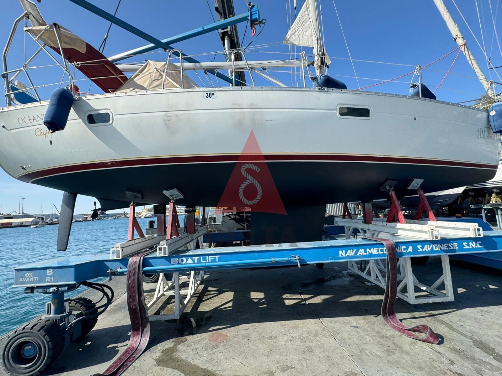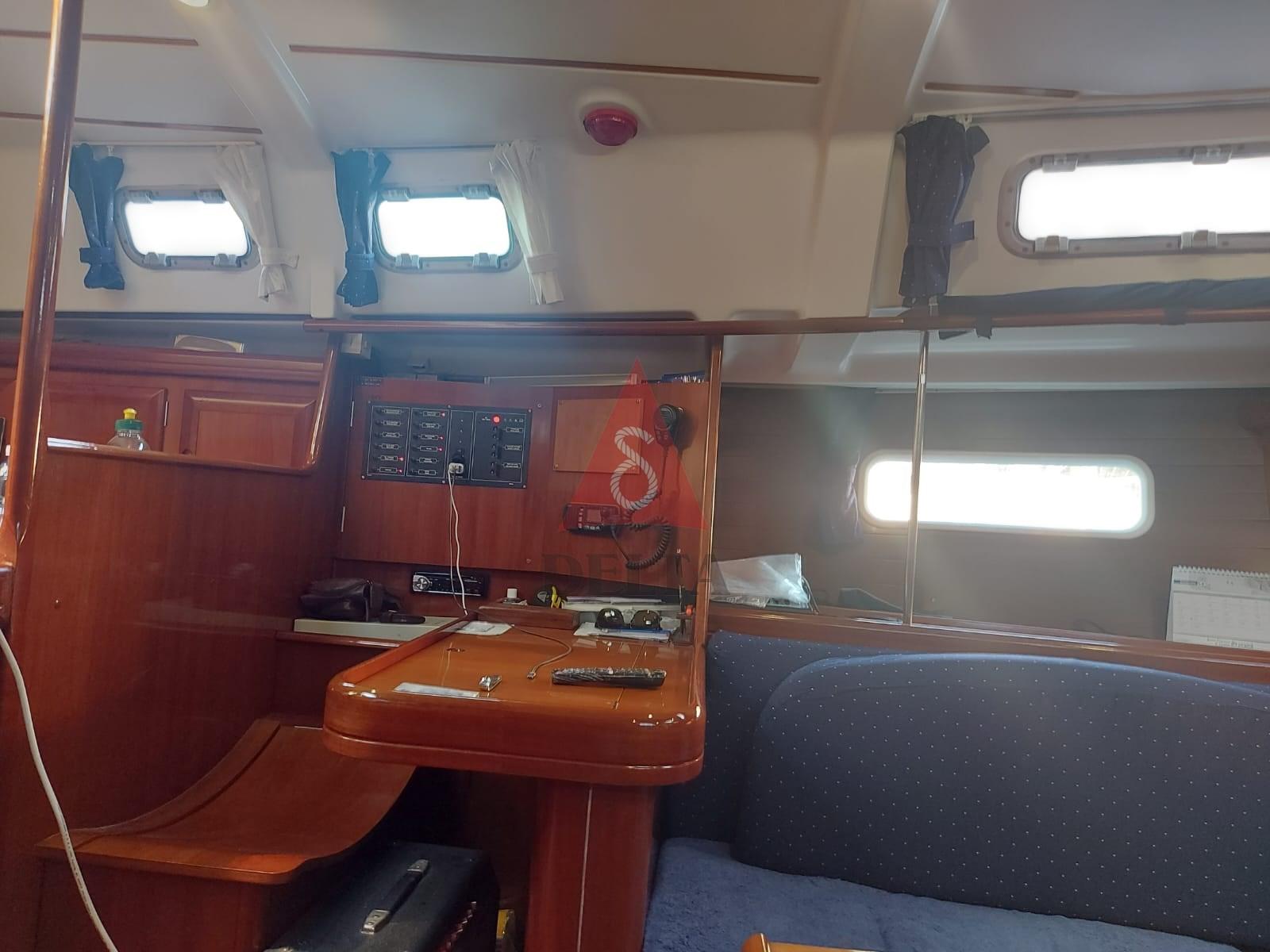 Alarme moteur, Eau sous pression, Douche de cockpit, Panneau solaire, Pompe de cale manuelle, Porte latérale, Prise de quai, Connexion eau sous pression à quai, Guindeau électrique, Gréement monotoron, Echelle de bain, table de cockpit, 3 Winch, Windex.