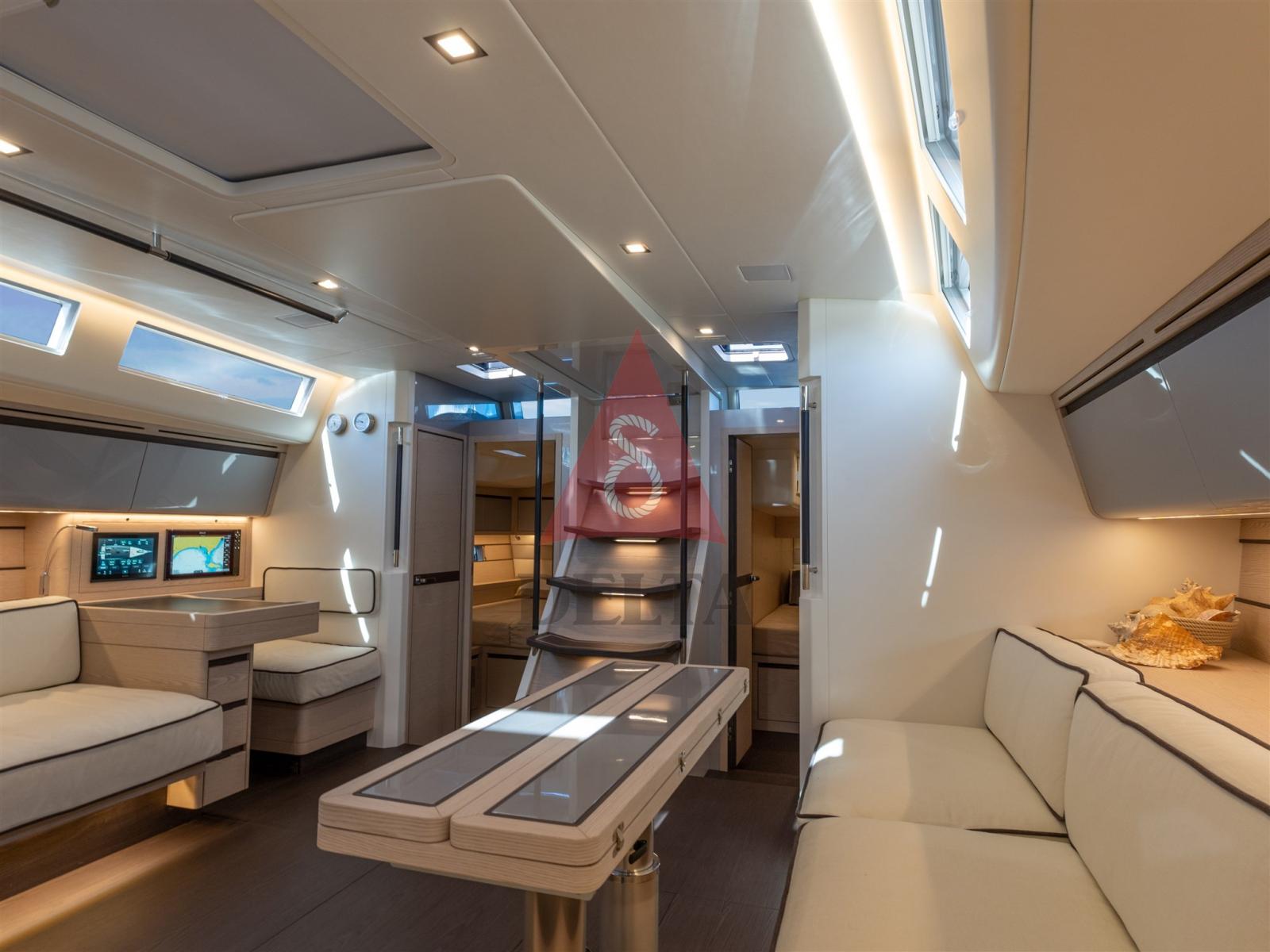 Le gréement en carbone standard est équipé d’un roulis électrique très confortable de grand-voile dans la bôme, très utile pour simplifier davantage les choses, aussi bien en navigation que pour la préparation de la réduction ou de l’abaissement des voiles
