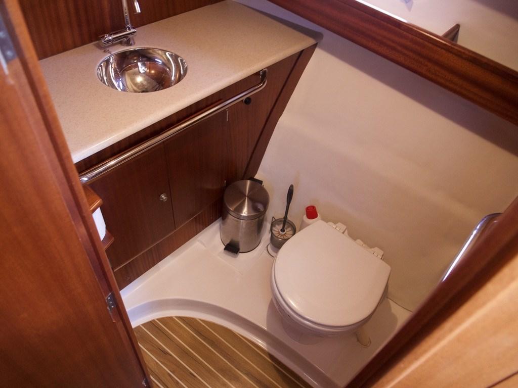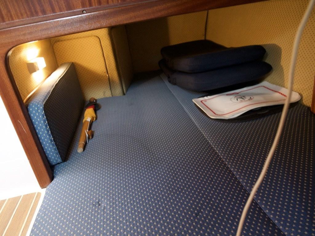 Confort : Grande et spacieuse cabine bien équipée avec deux couchettes doubles séparées, table, trappe de pont et table à manger.