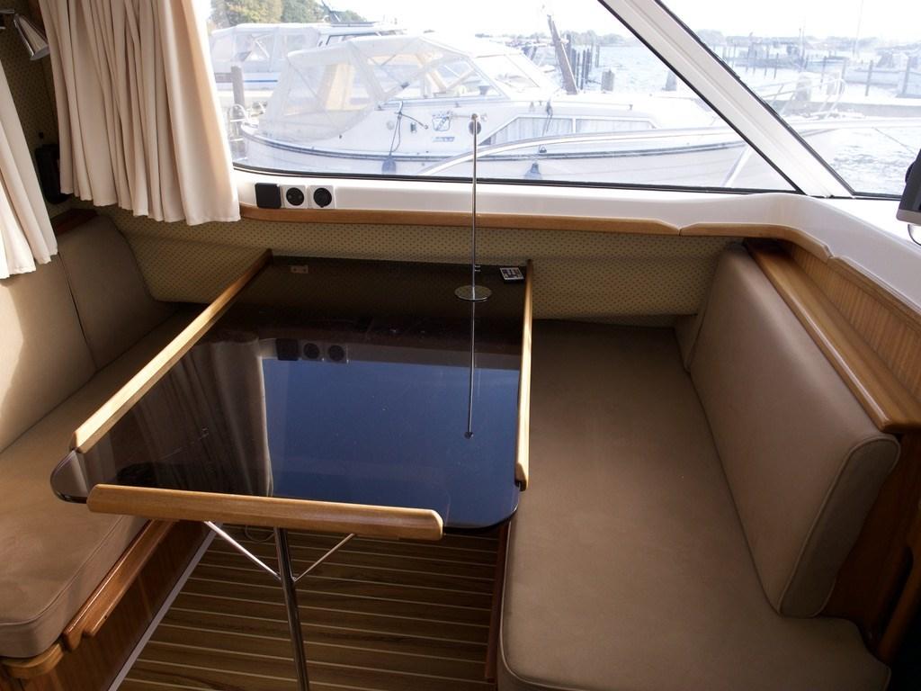 Flaps électriques, Plateforme arrière, Pompe de cale manuelle, Porte latérale, Prise de quai, Echelle de bain, Table pliante de salon.