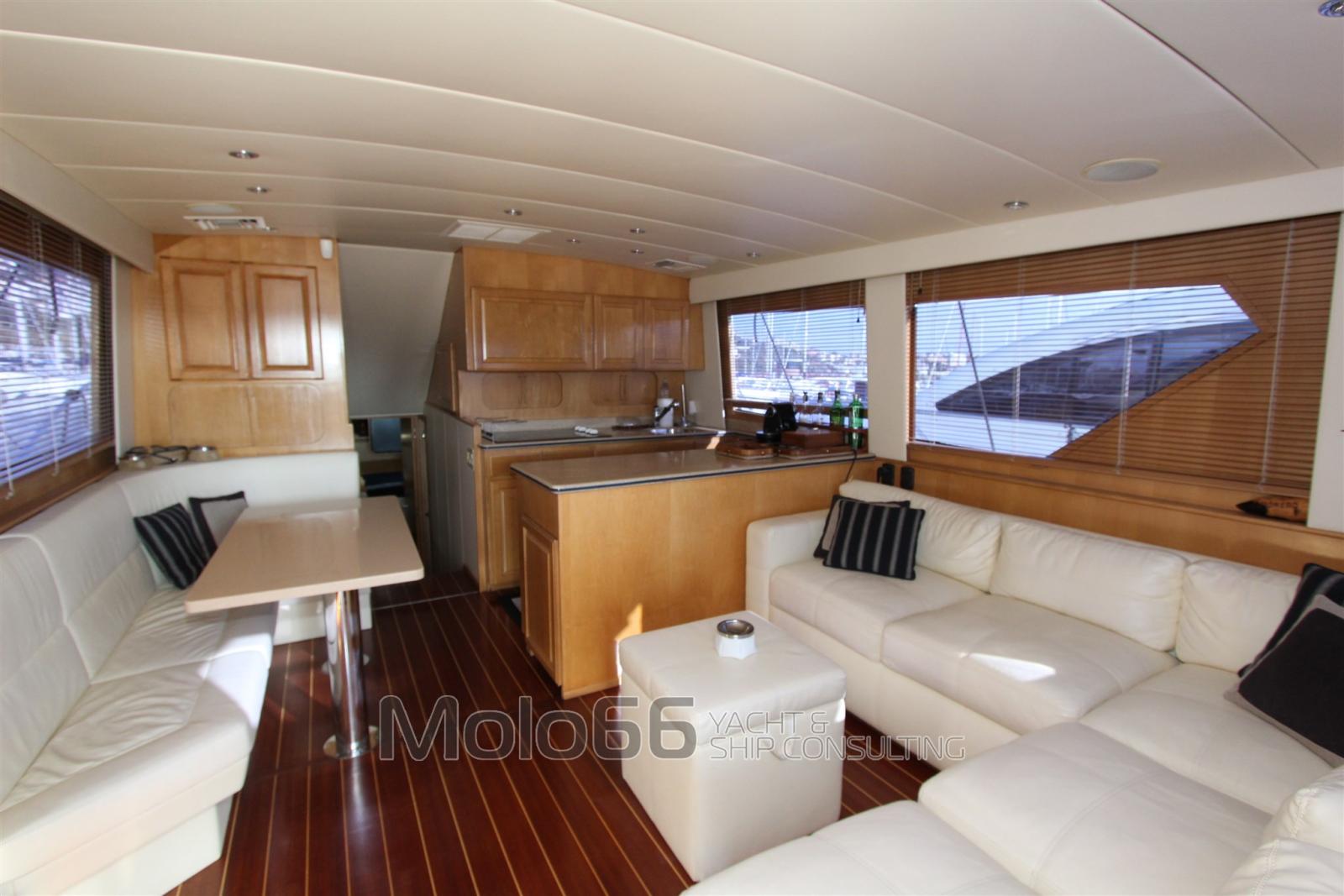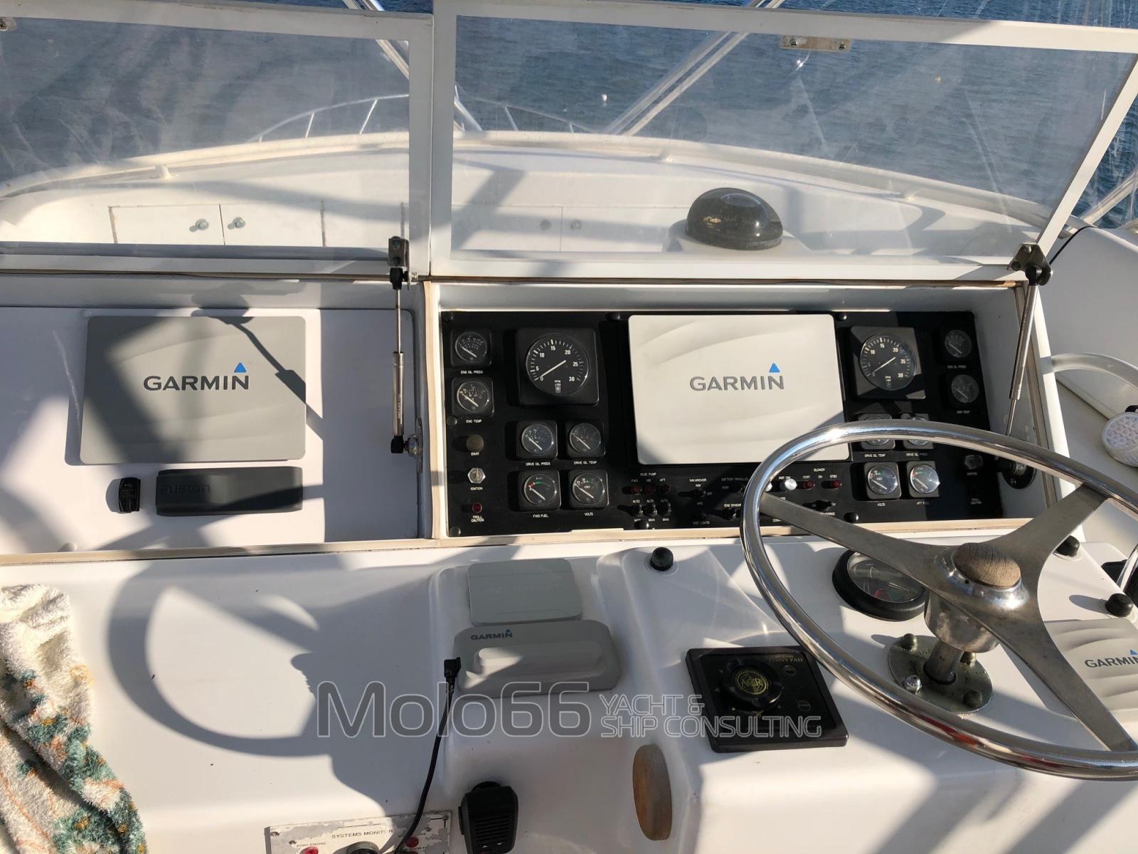 Alarme gaz, Alarme moteur, Alarme de pompe de cale, Eau sous pression, Couleur spéciale (Yellow), Douche de cockpit, Phares fixes arrière, Phare de poursuite, Flaps hydrauliques, Hard top, Extincteur(s) fixe(s), Lavage de chaine, Éclairage de courtoisie, Plateforme arrière, Porte latérale, Prise de quai, Onduleur, Guindeau électrique, Echelle de bain, Corne.
