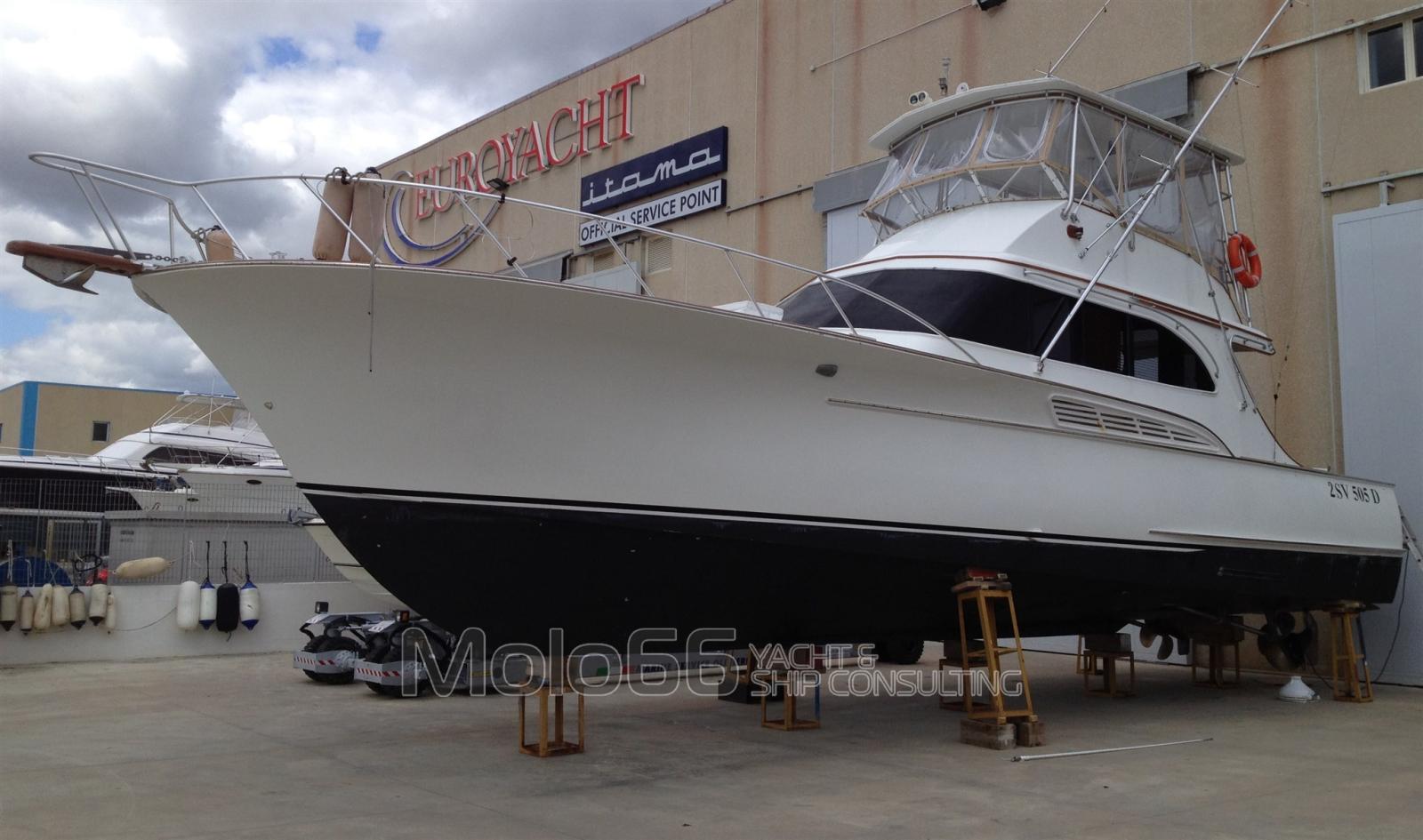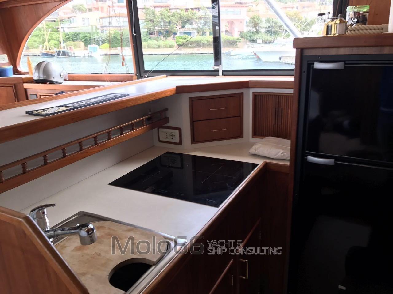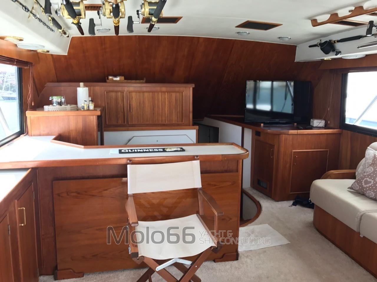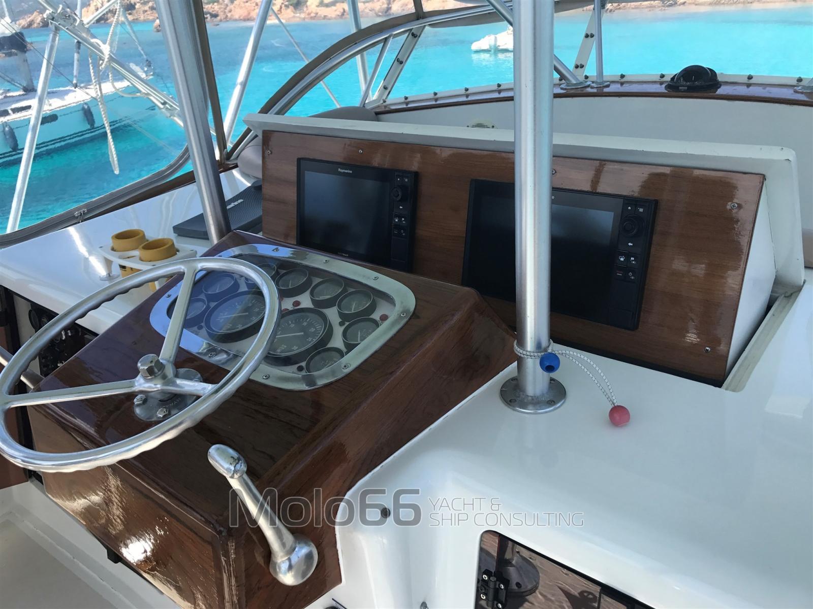 Alarme moteur, Alarme de pompe de cale, Eau sous pression, Passavant en teck, Douche de cockpit, Phare de poursuite, Flaps hydrauliques, Hard top, Extincteur(s) fixe(s), Éclairage de courtoisie, Passerelle, Pompe de cale automatique, Cockpit en teck, Prise de quai, Guindeau électrique, Echelle de bain, table de cockpit, Corne, Winch électrique avant.