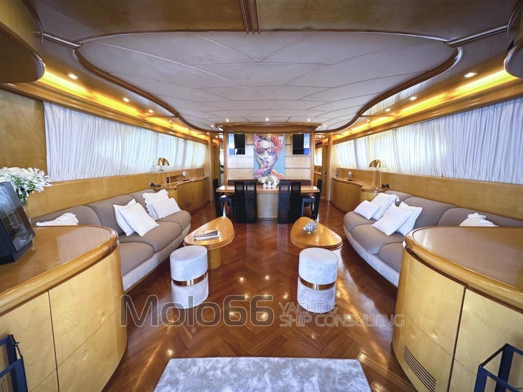 Alarme moteur, Alarme de pompe de cale, Eau sous pression, Passavant en teck, Douche de cockpit, Phare de poursuite, Flaps hydrauliques, Extincteur(s) fixe(s), Lavage de chaine, Éclairage de courtoisie, Plateforme arrière, Cockpit en teck, Prise de quai, Onduleur, Guindeau électrique, Echelle de bain, table de cockpit, Annexe, Winch électrique arrière, Winch électrique avant.