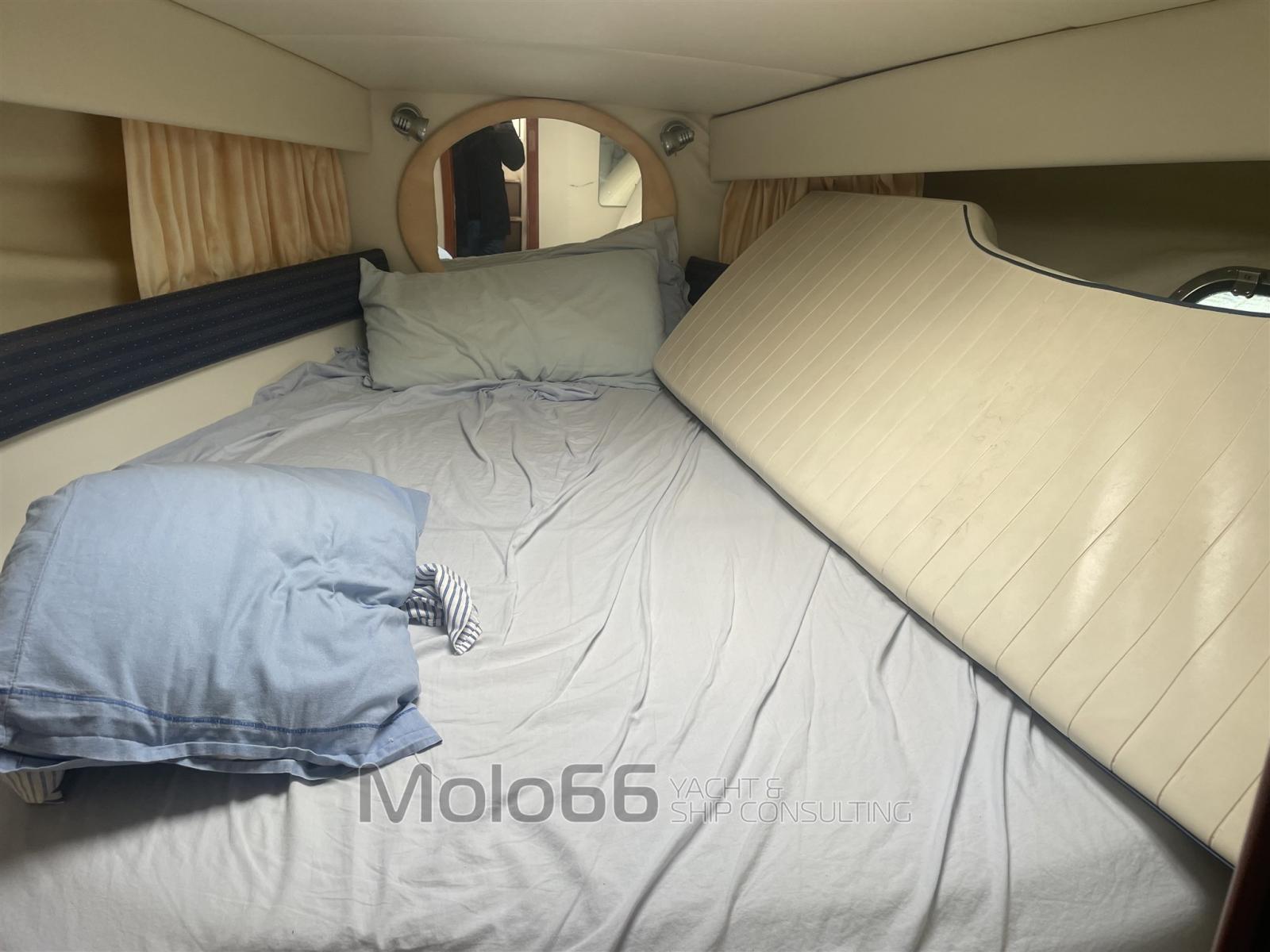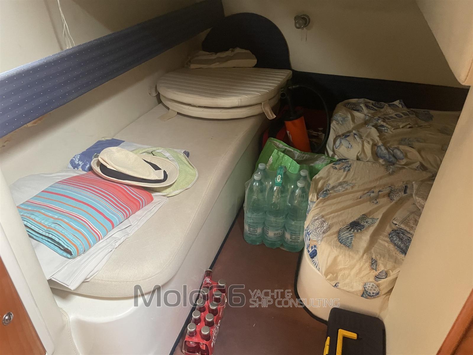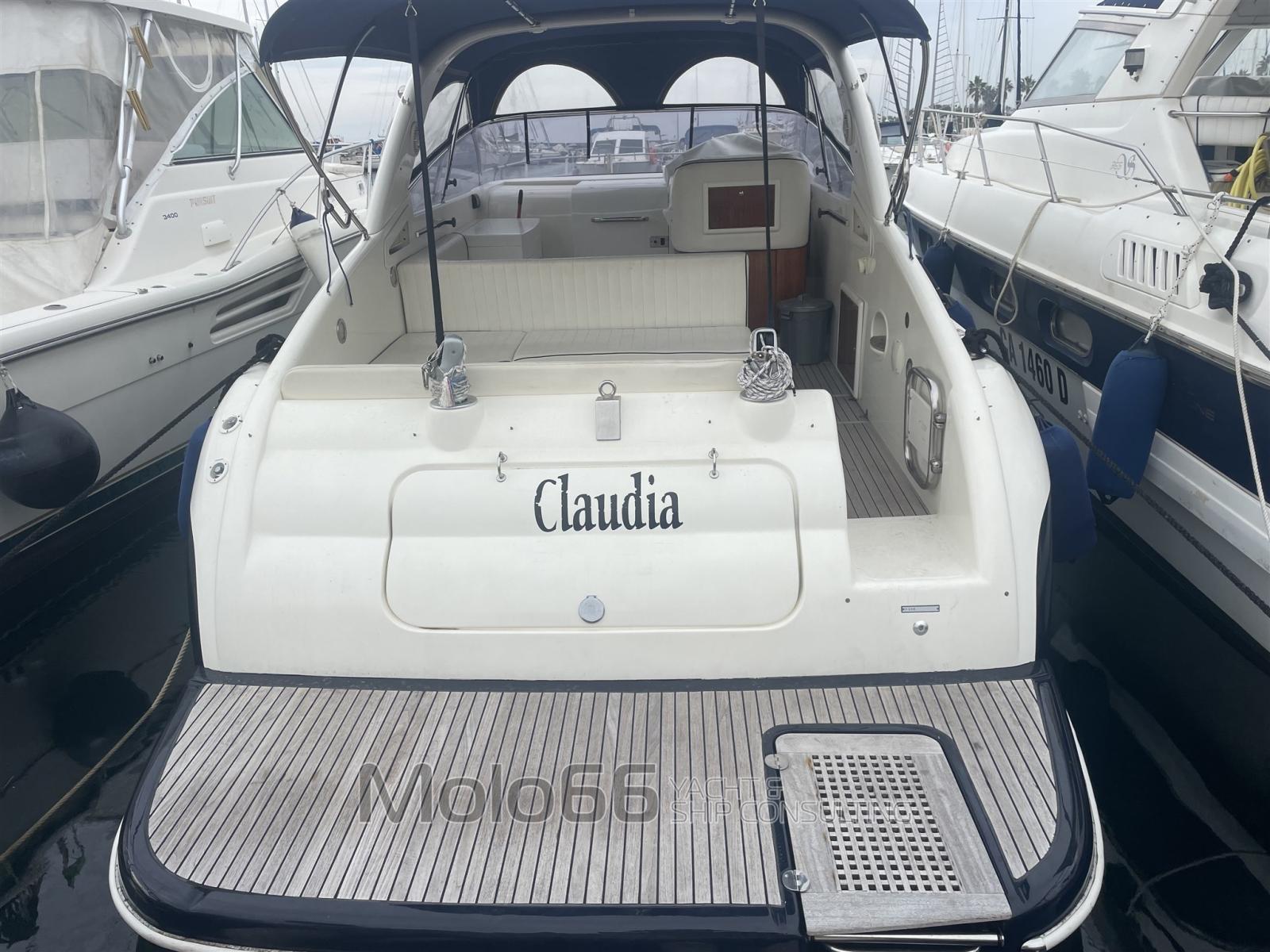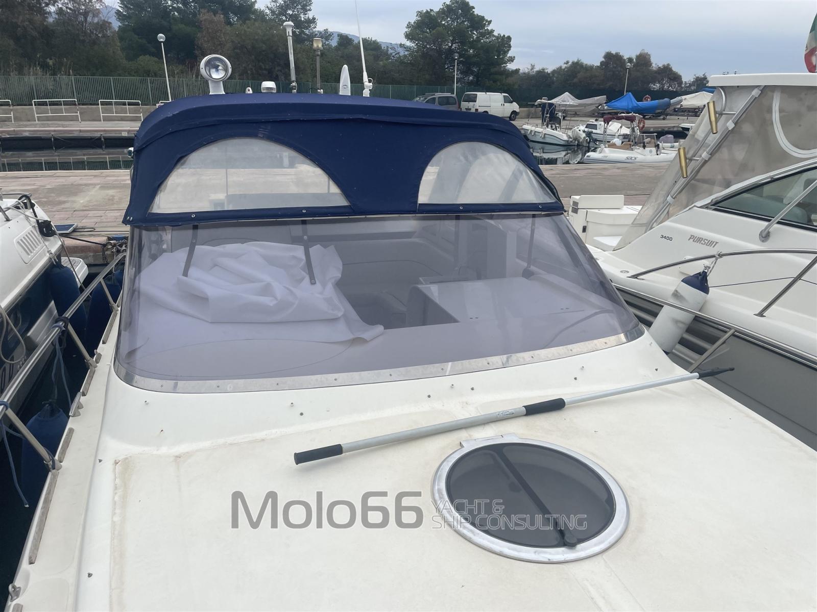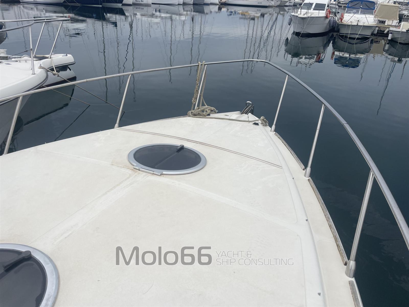 Alarme gaz, Alarme moteur, Alarme de pompe de cale, Eau sous pression, Radeau de sauvetage (ZATTERA EUROVINIL COSTAL), Couleur spéciale (Blu navy), Douche de cockpit, Extincteur(s) fixe(s), Plateforme arrière, Cockpit en teck, Prise de quai, Connexion eau sous pression à quai, Guindeau électrique, Echelle de bain, table de cockpit, Annexe (PLASTIMO), Corne.