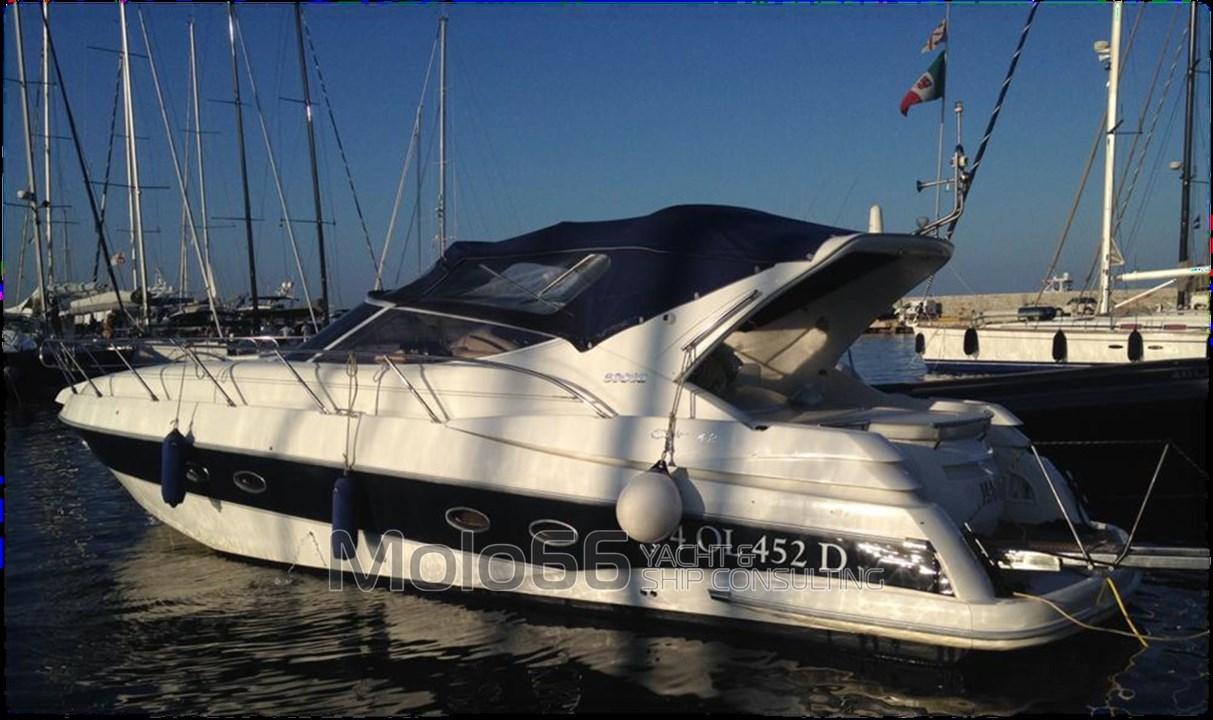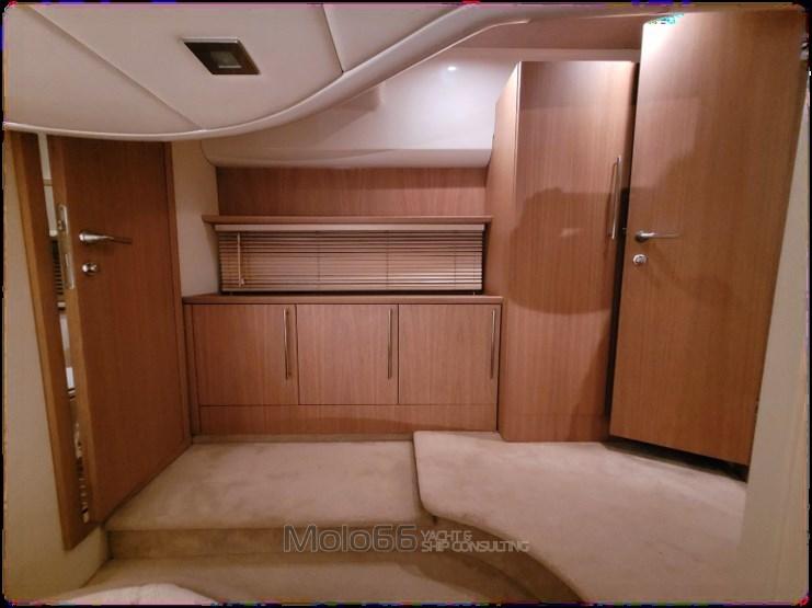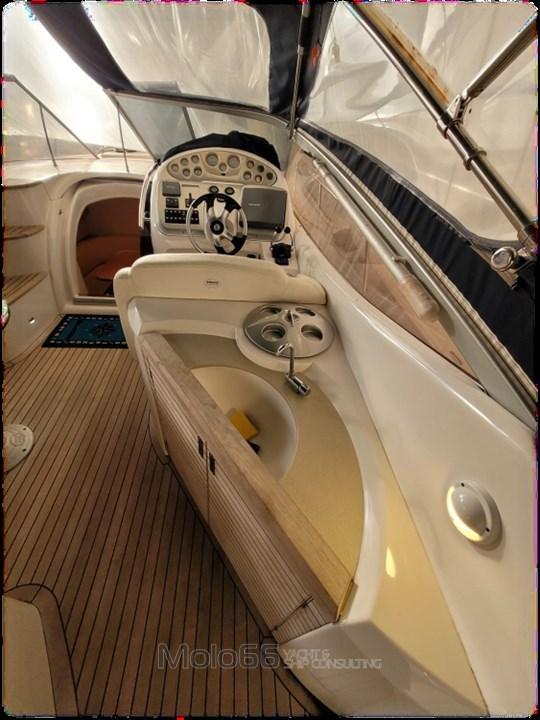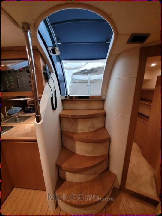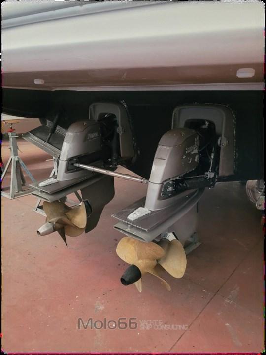 Alarme moteur, Alarme de pompe de cale, Ouverture du compartiment moteur électrique, Eau sous pression, 4 Batteries, Douche de cockpit, Flaps hydrauliques (N°2), Garage à annexe, Extincteur(s) fixe(s), Indicateurs de flaps, Lavabo dans le cockpit, Éclairage de courtoisie, Passerelle, Plateforme arrière, Pompe de cale automatique, Cockpit en teck, Prise de quai, Rollbar, Guindeau électrique, Echelle de bain, table de cockpit, Corne.