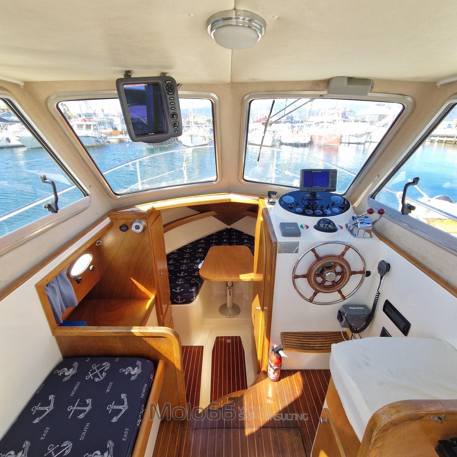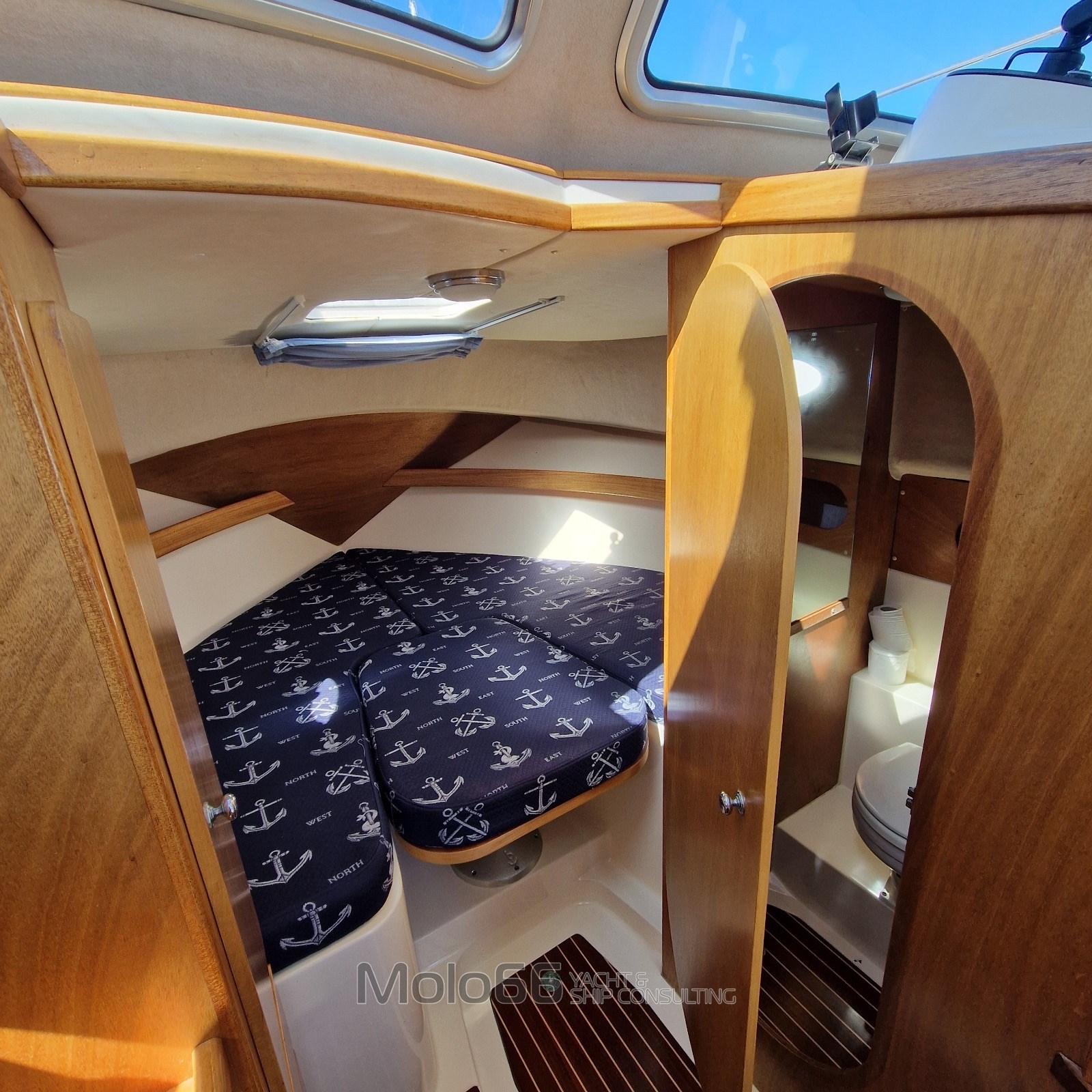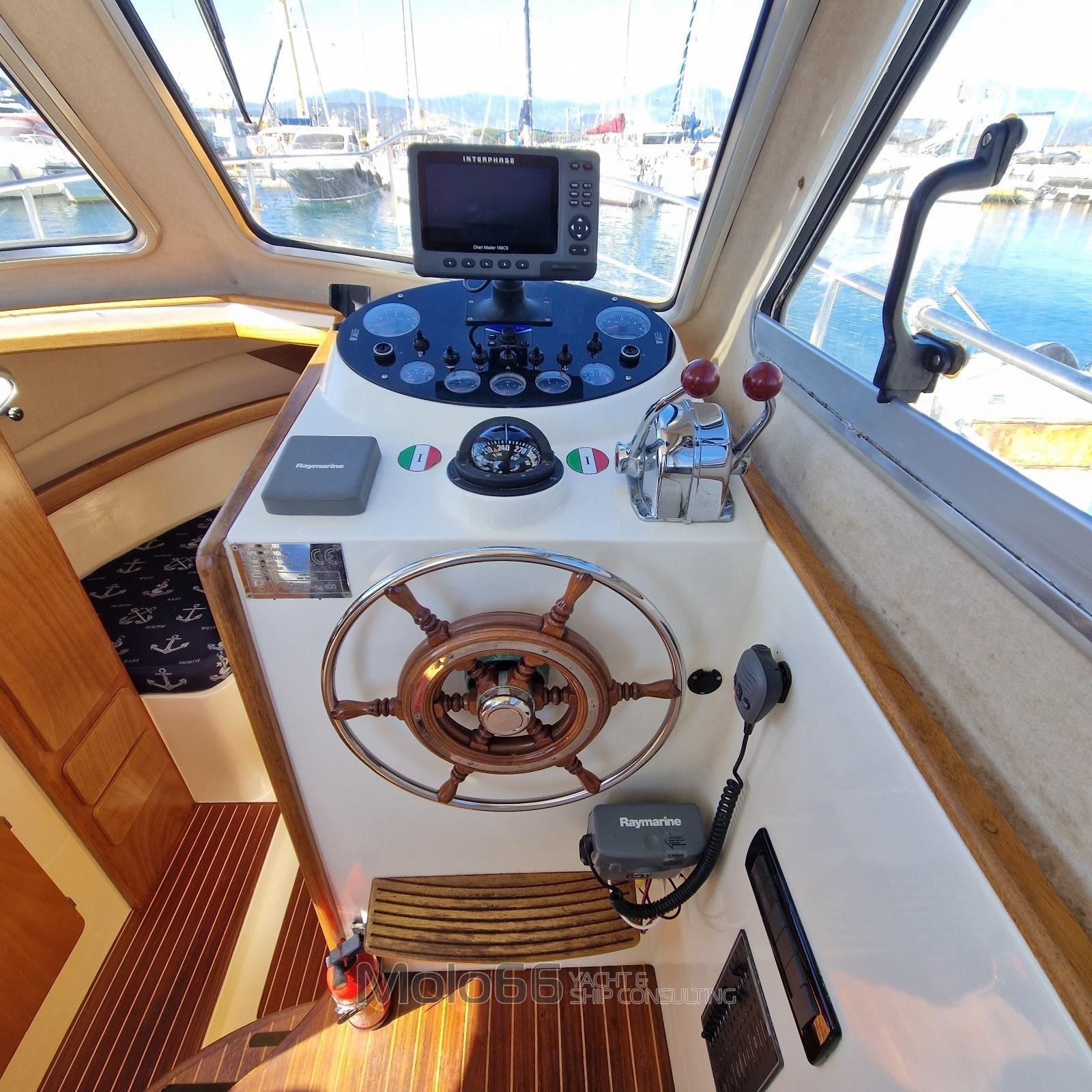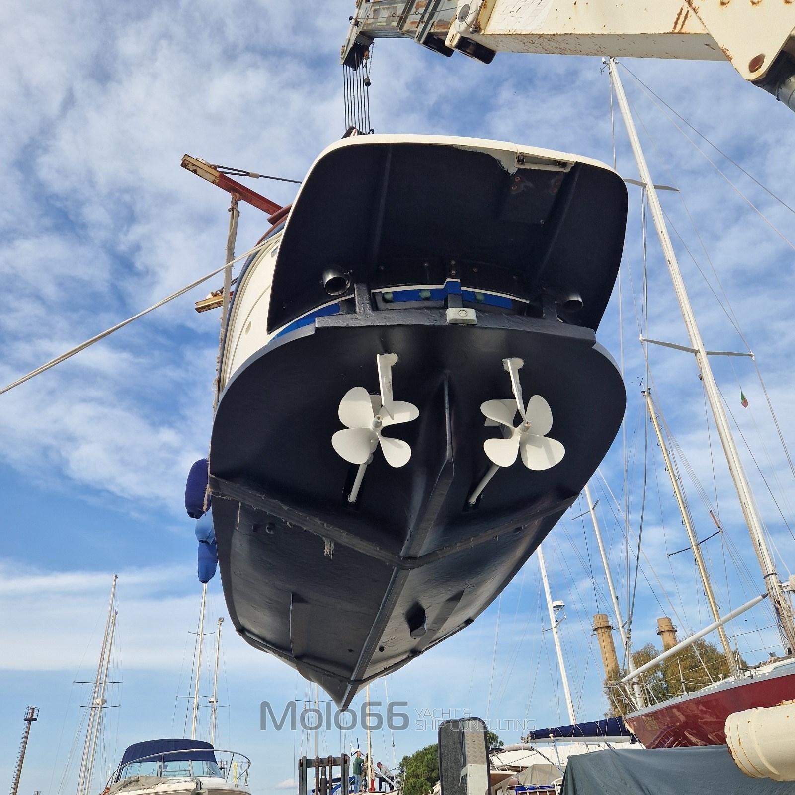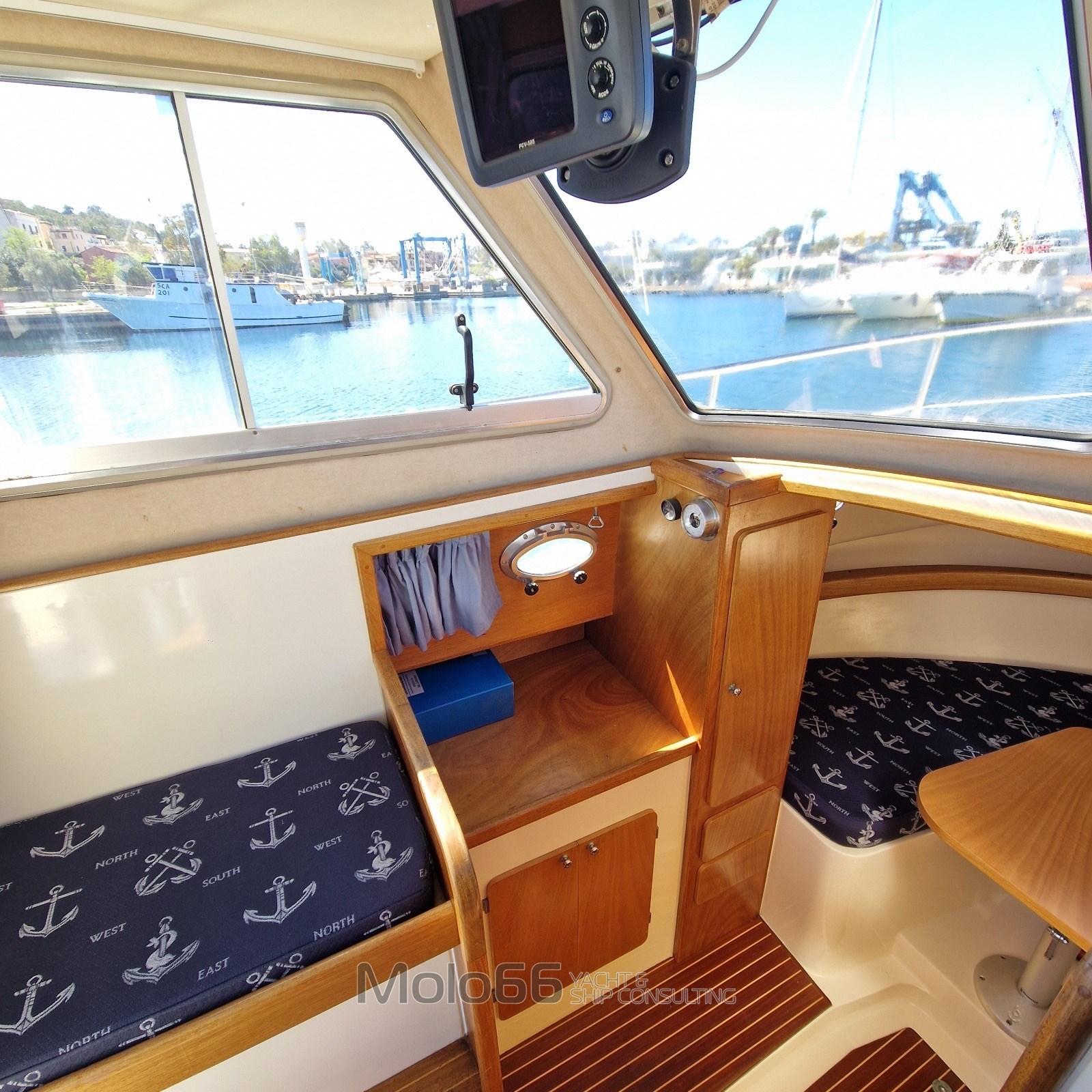 Alarme moteur, Alarme de pompe de cale, Ancre (14Kg), Eau sous pression, 4 Radeau de sauvetage, 2 Batteries (140), Douche de cockpit (Nuova), 2 Pompe de cale automatique, Prise de quai, Table pliante de salon, Corne.